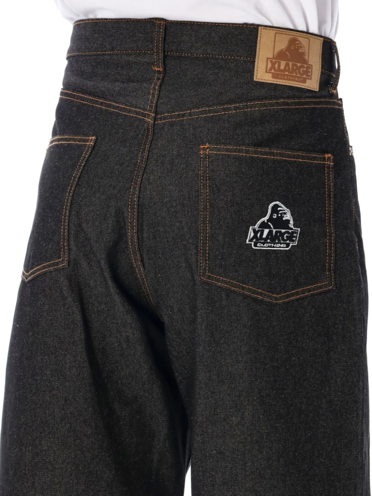 Черная застежка на пуговицы и молнию спереди, классические пять карманов, кожаная бирка, длина до колена