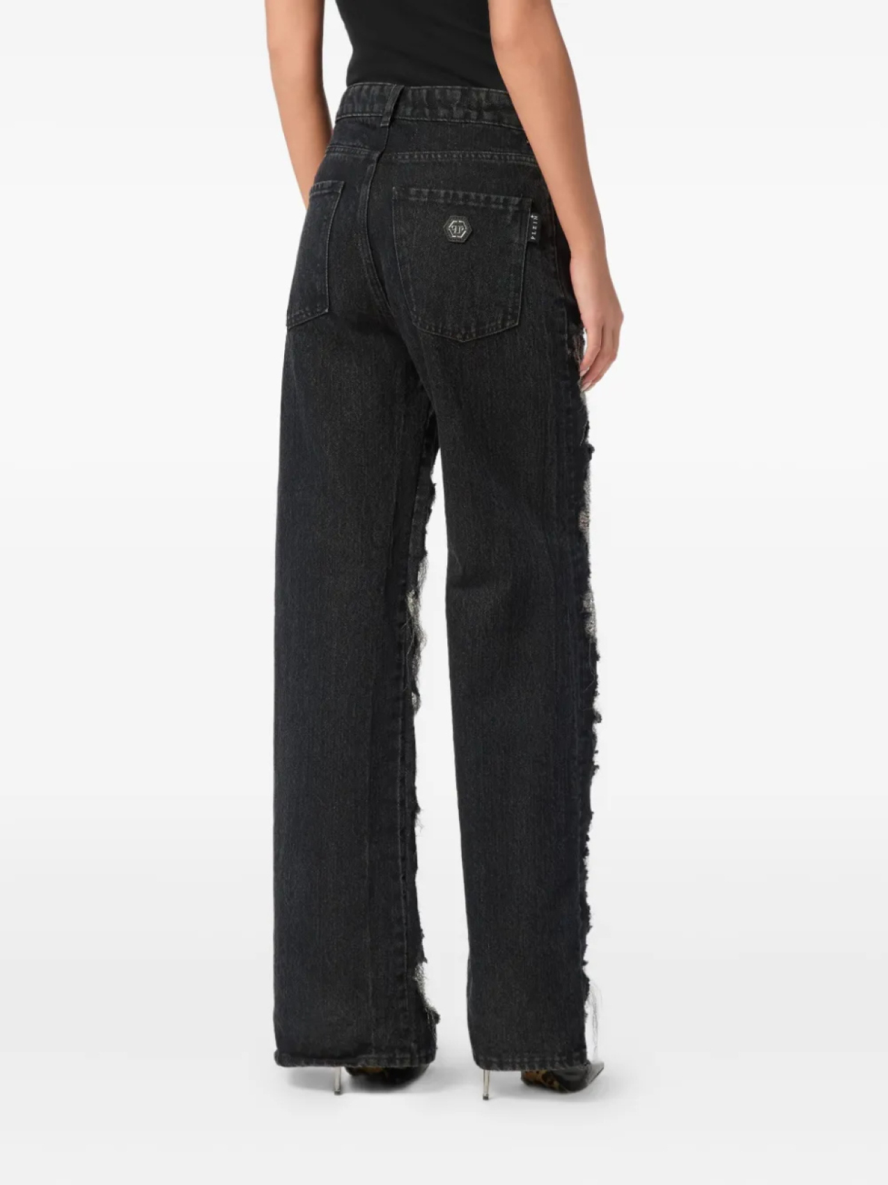 Джинсы со стразами и сеткой Philipp Plein, черный