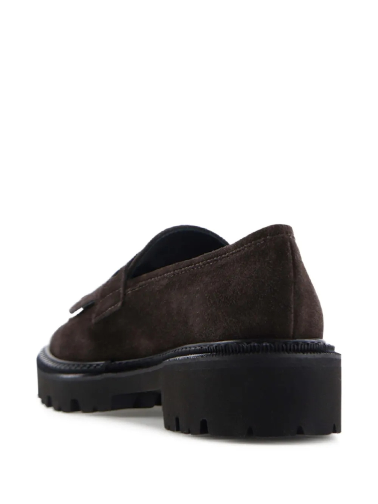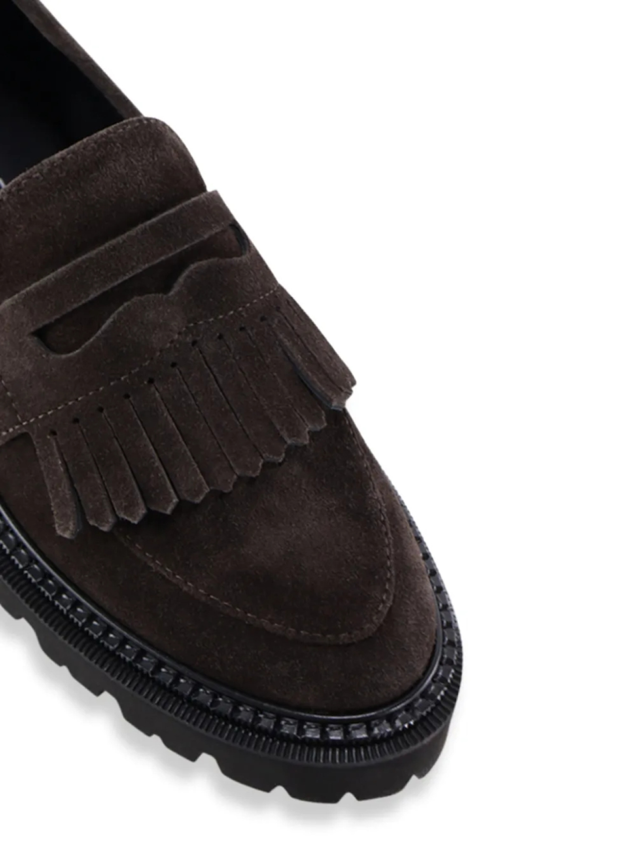 Темно-коричневый текстурированный верх, массивная подошва, бахрома, мягкая стелька