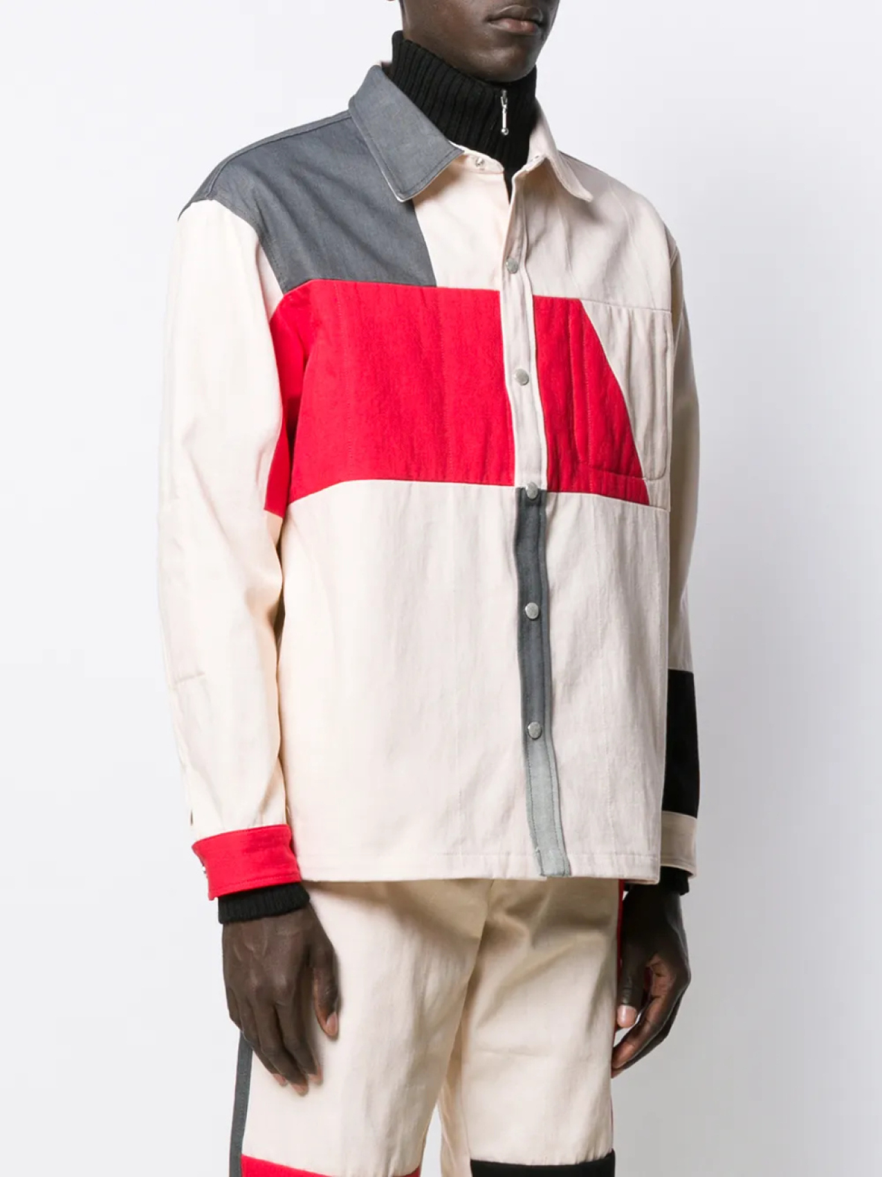 Разноцветная хлопковая куртка-рубашка в стиле колор-блок от DIESEL RED TAG с классическим воротником, застежкой на пуговицы спереди, длинными рукавами и прямым подолом.