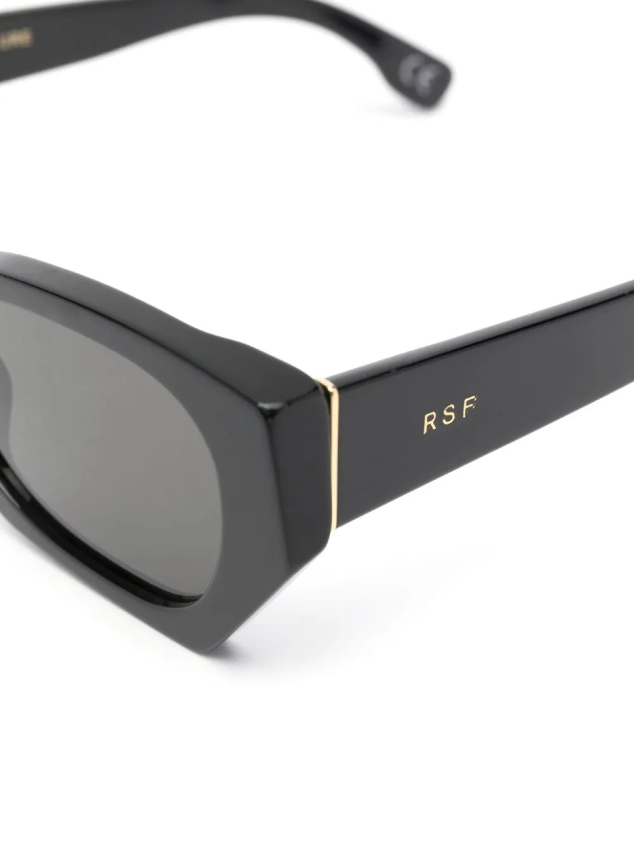 Прямоугольная оправа, затемненные линзы, прямые дужки и дужки с закругленными концами. Цвет: черный.