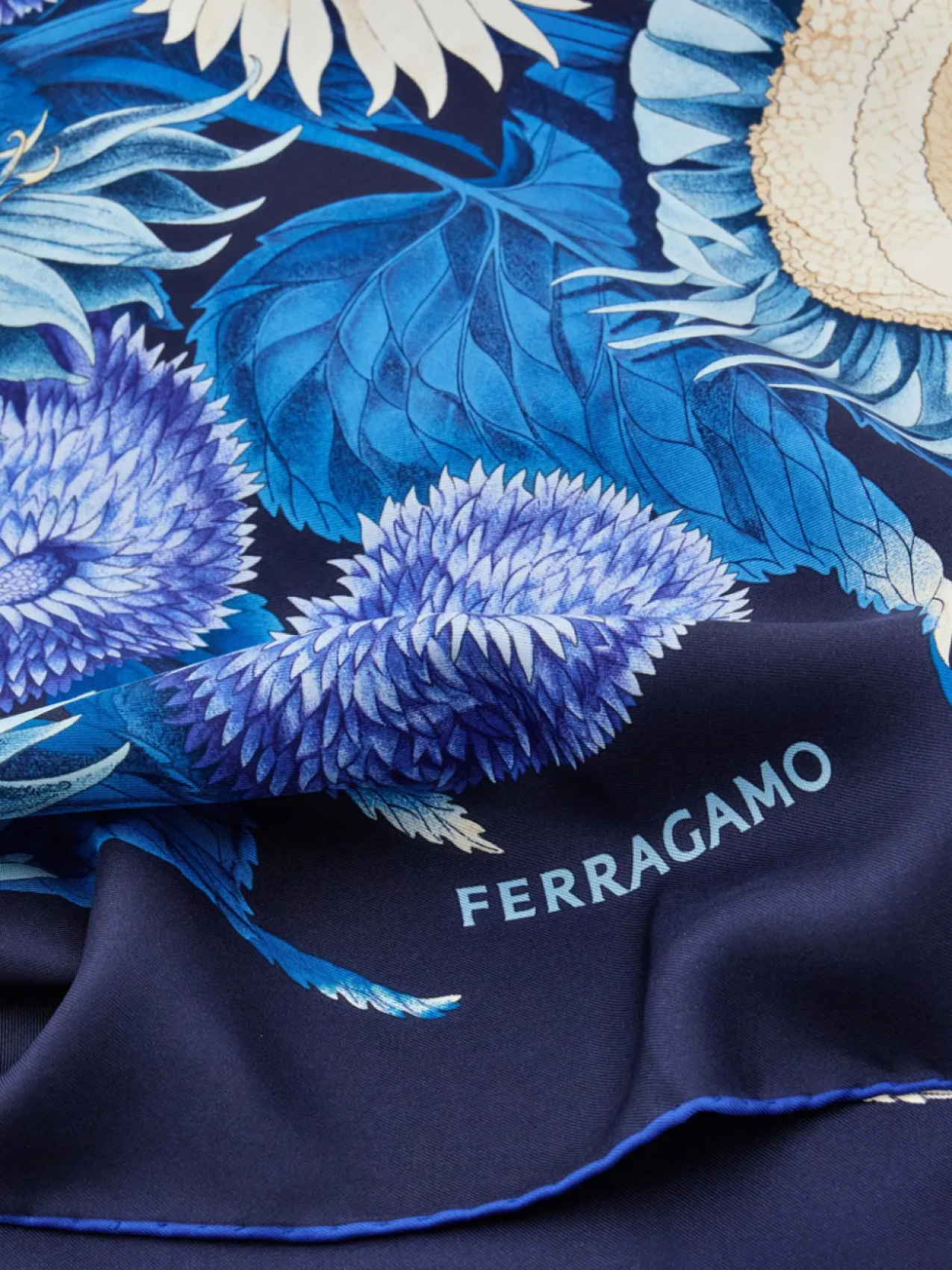 Шелковый платок с принтом Sunflower Ferragamo, синий 56 548₽