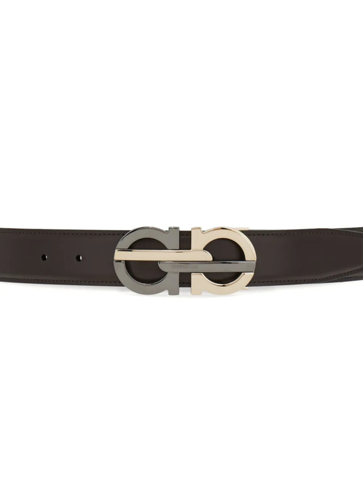 Двусторонний ремень с пряжкой Gancini Ferragamo, коричневый
