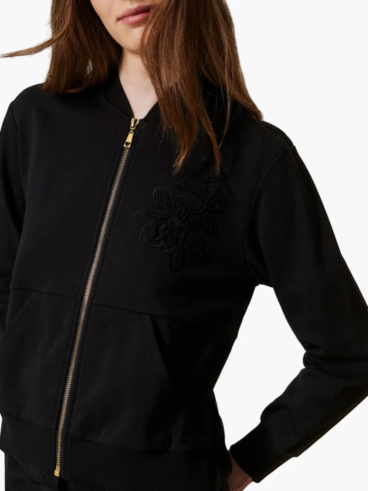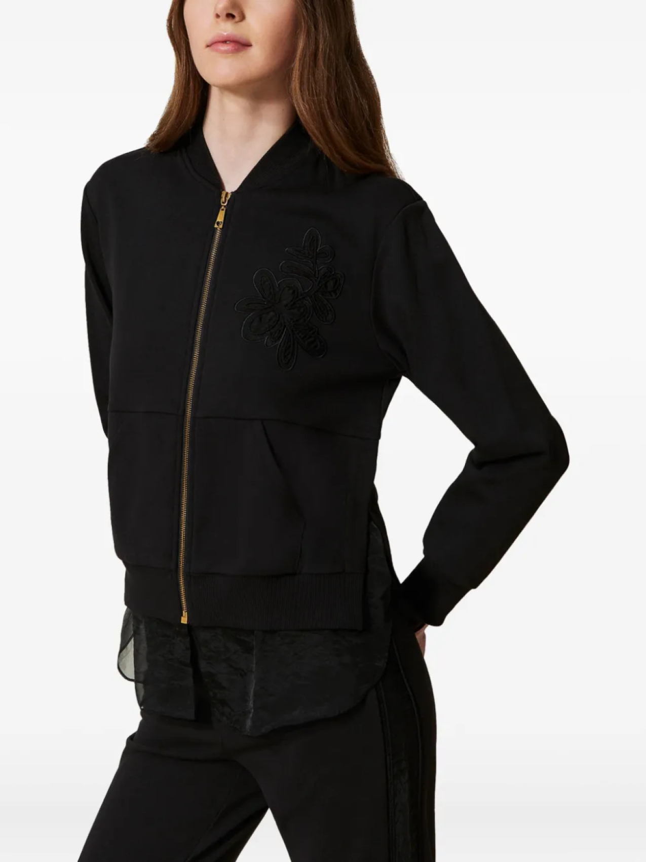 Свитшот с вышивкой и вставкой из органзы TWINSET, черный