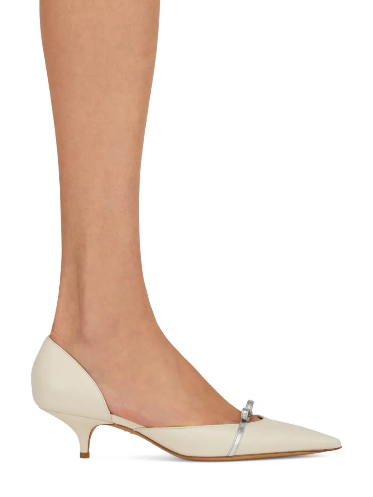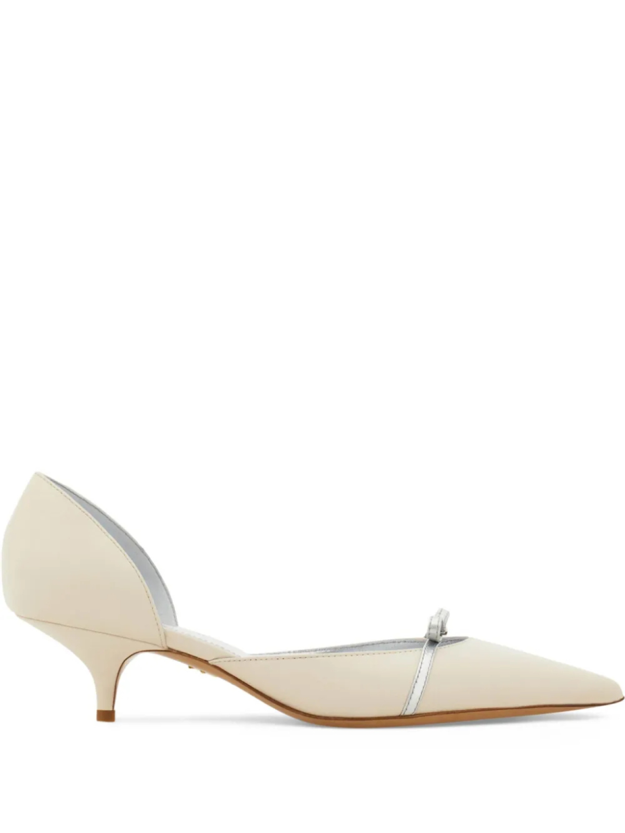 Кремовая атласная отделка, серебристые детали, изящный бант, регулируемый ремешок, элегантный силуэт