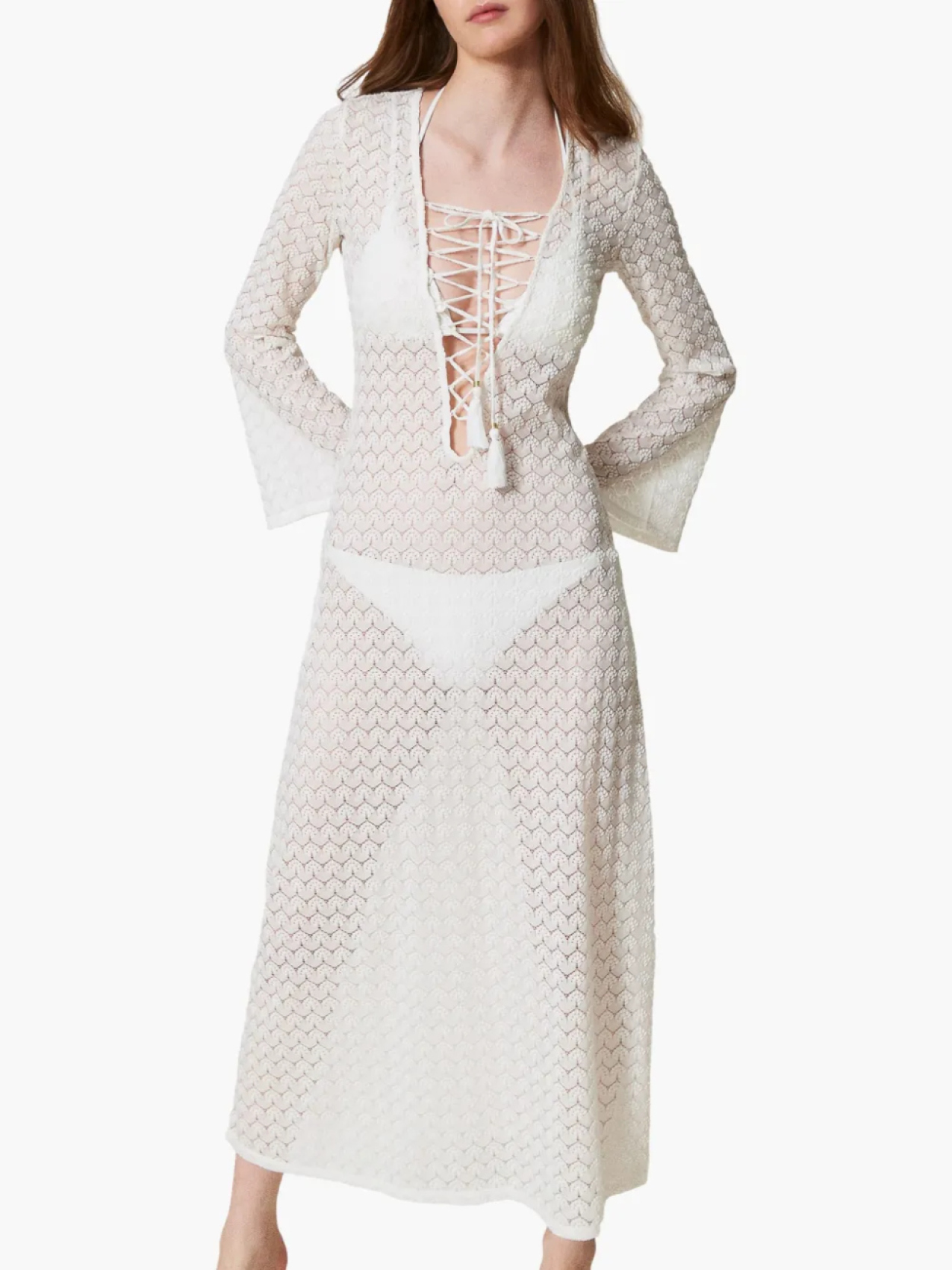 Пляжное платье ажурной вязки TWINSET, белый