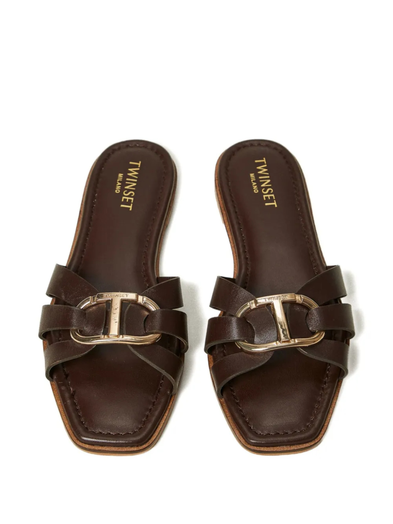 Шлепанцы с пряжкой-логотипом TWINSET, коричневый