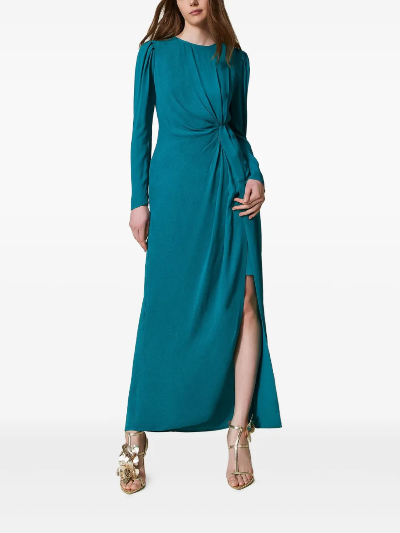 Синяя синяя застежка-молния сзади, драпированные детали, разрез сбоку
