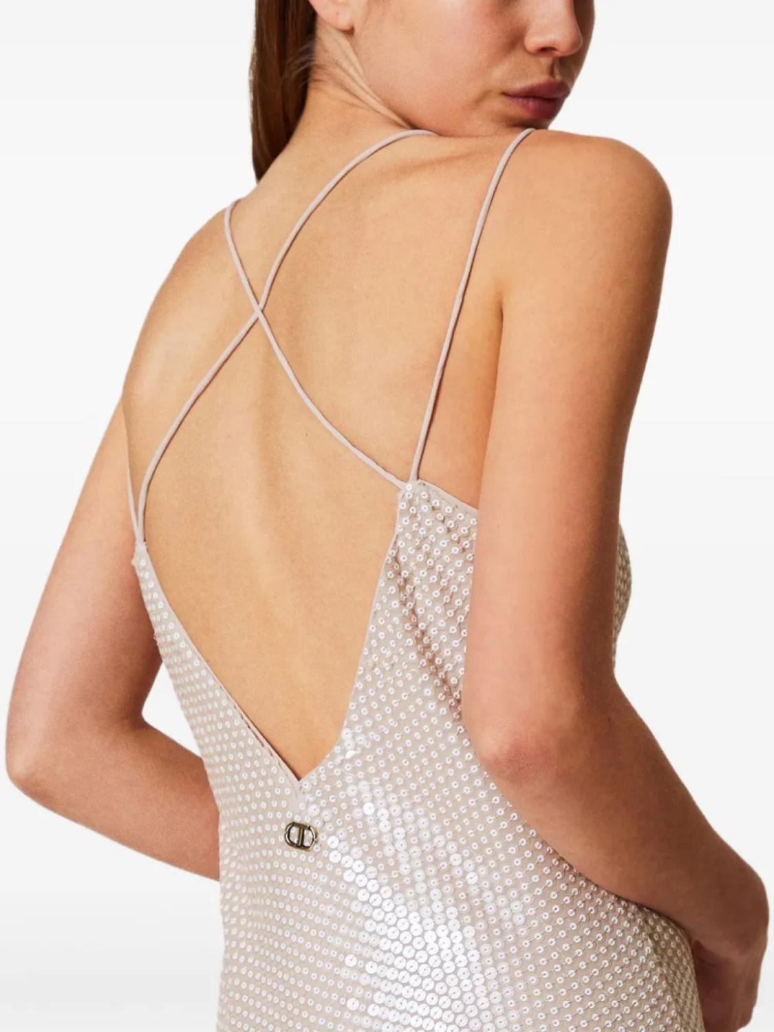 Белая потайная застежка-молния сбоку, V-образный вырез, перекрещенные бретели, разрезы по бокам