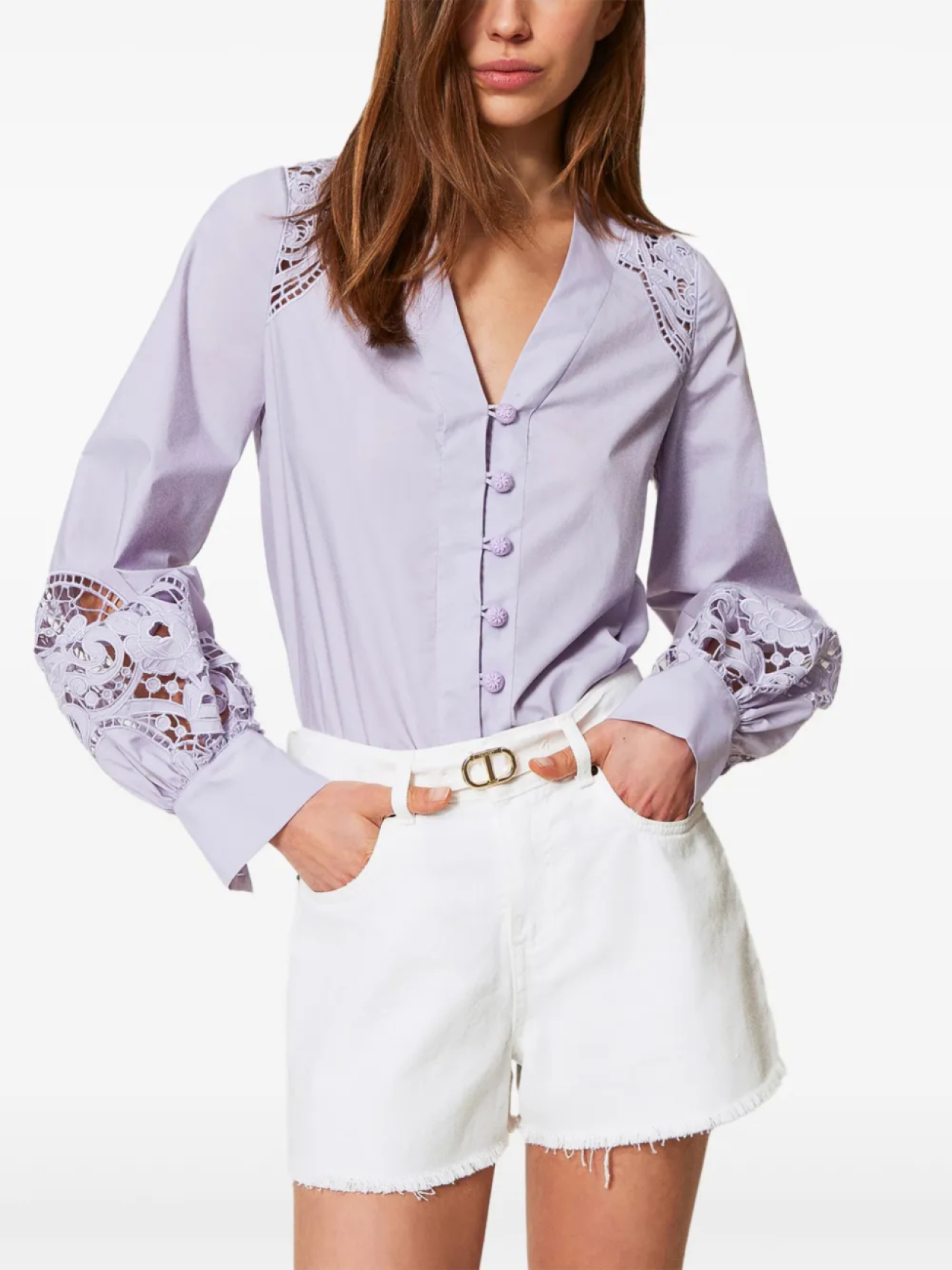 Рубашка с английской вышивкой TWINSET, фиолетовый