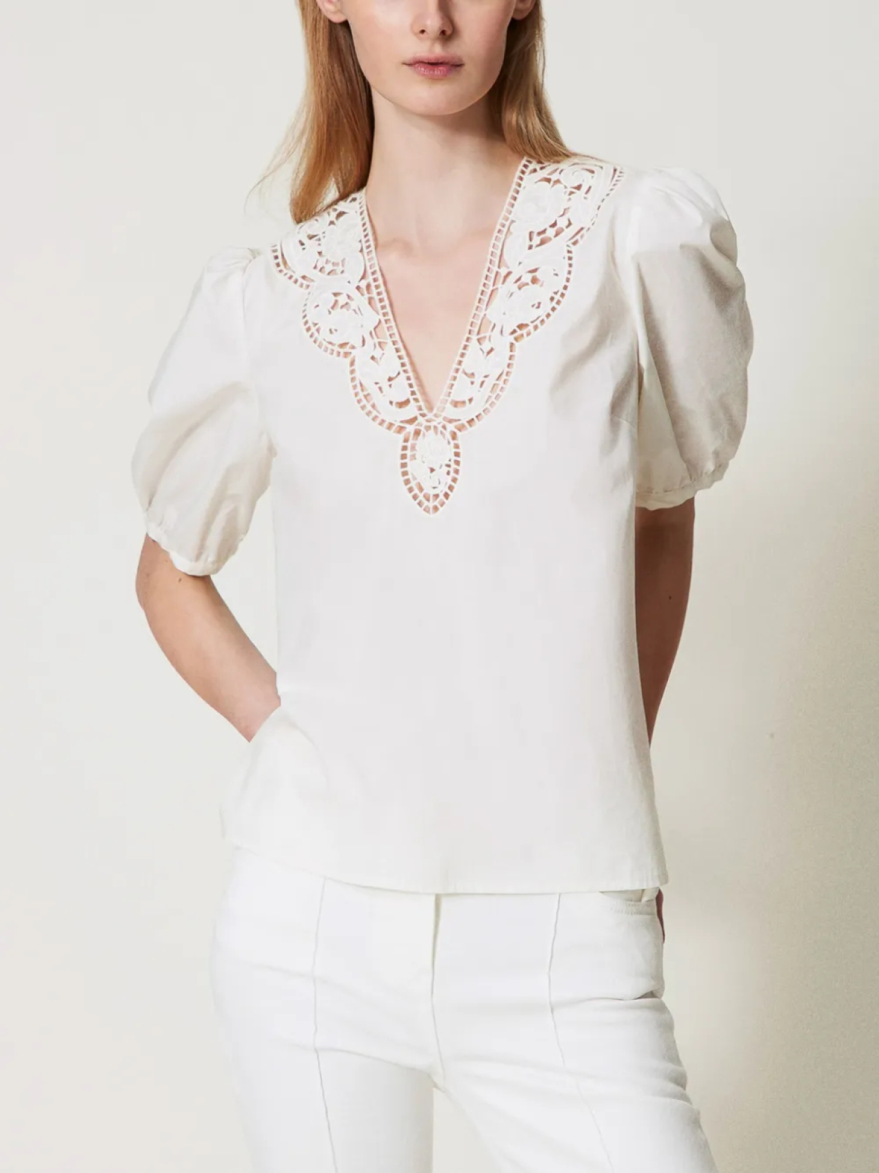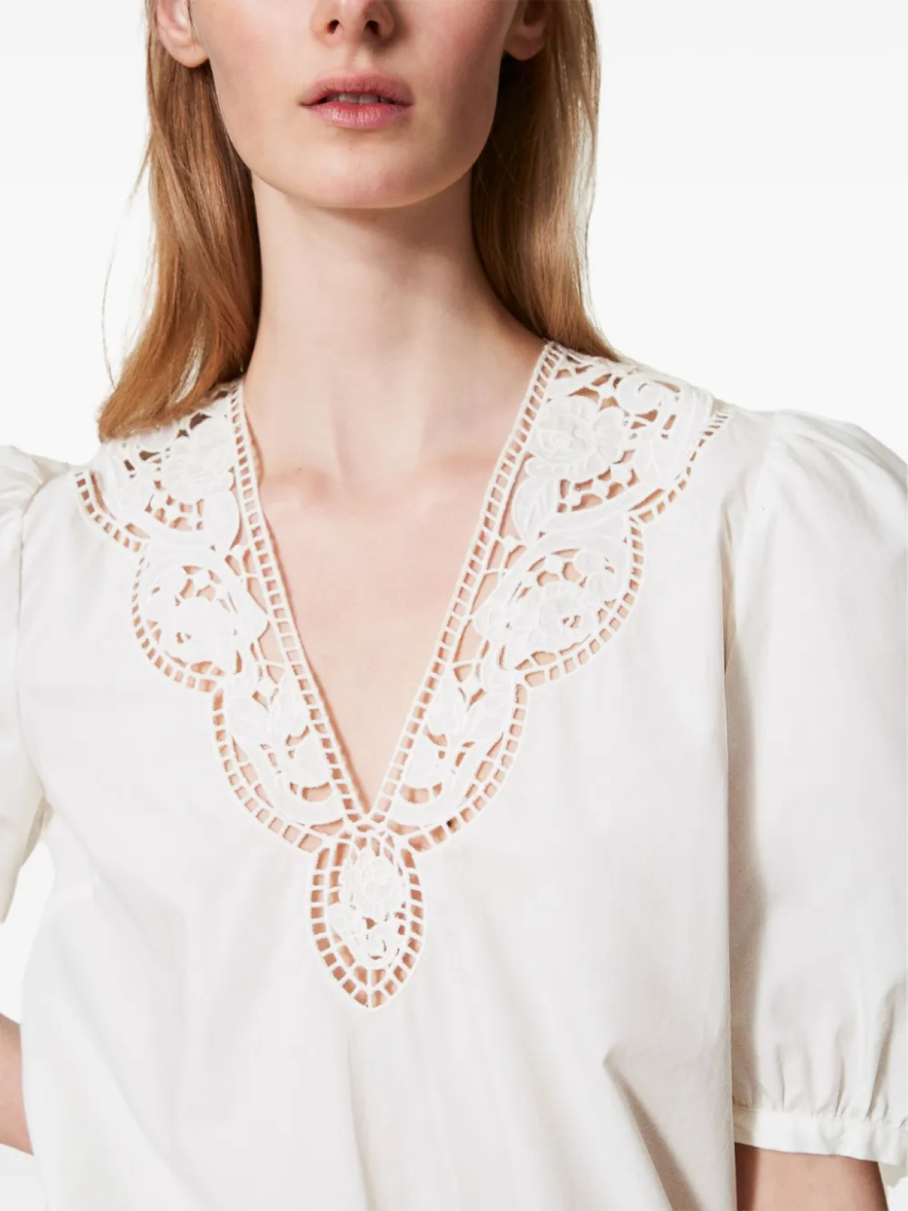 Блузка с вышивкой ришелье TWINSET, белый