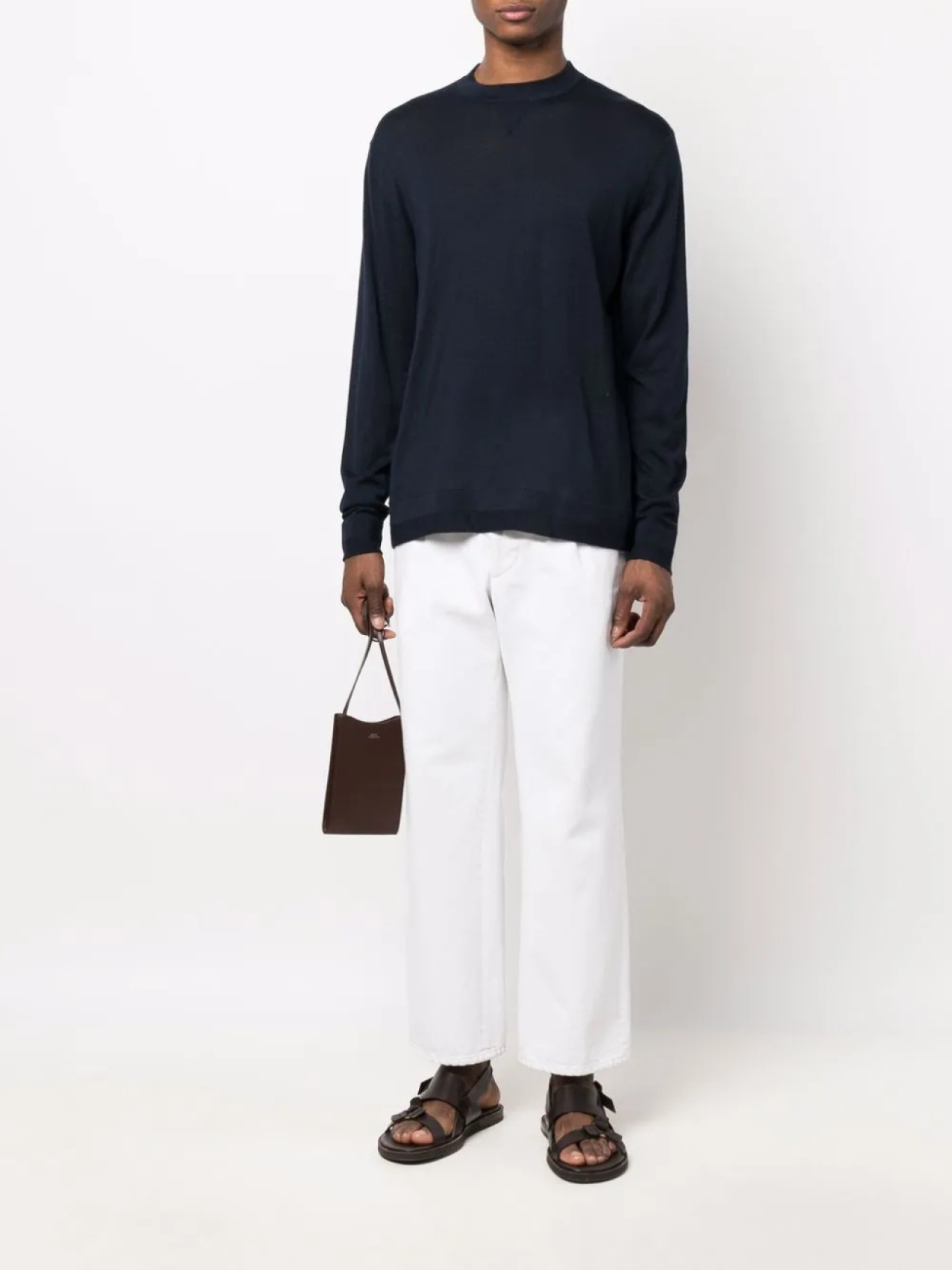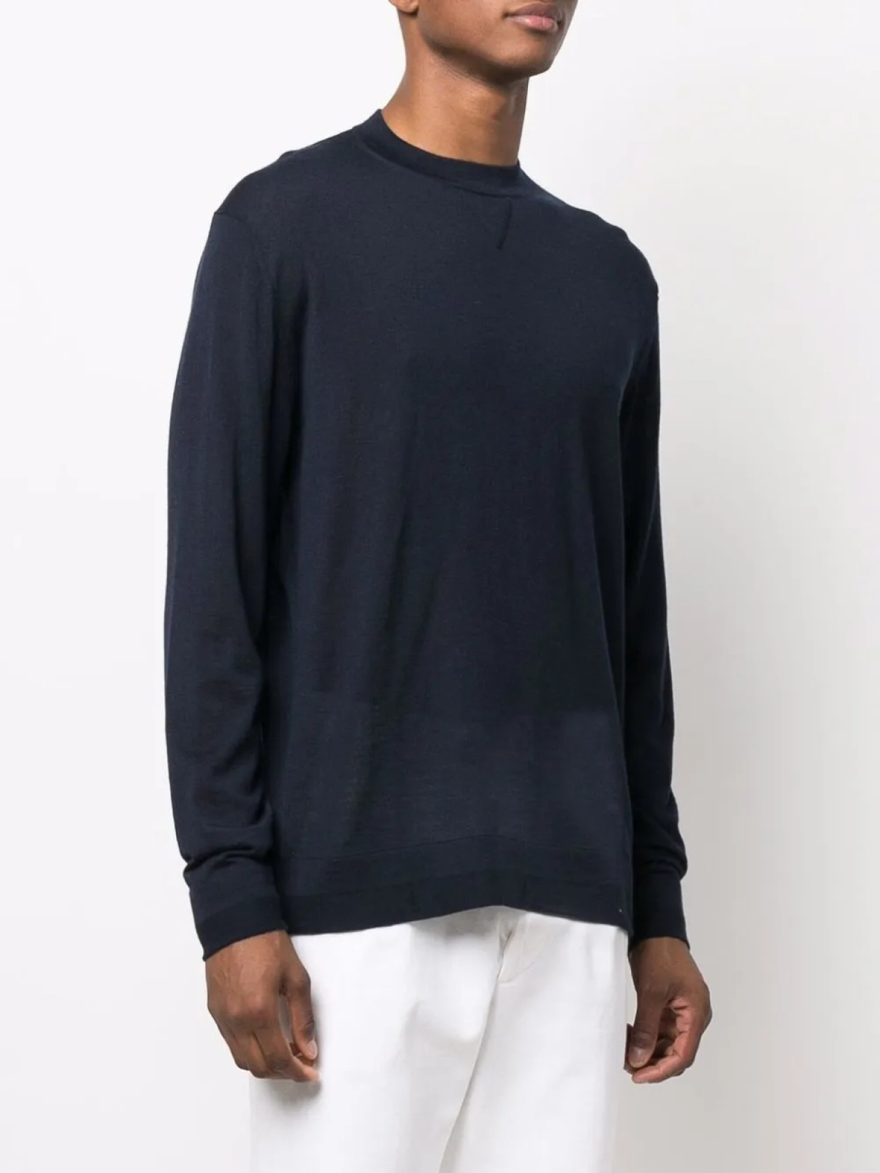 Тонкая вязка, отделка в рубчик, круглый вырез, длинные рукава, рукава с узкими манжетами и прямой подол.