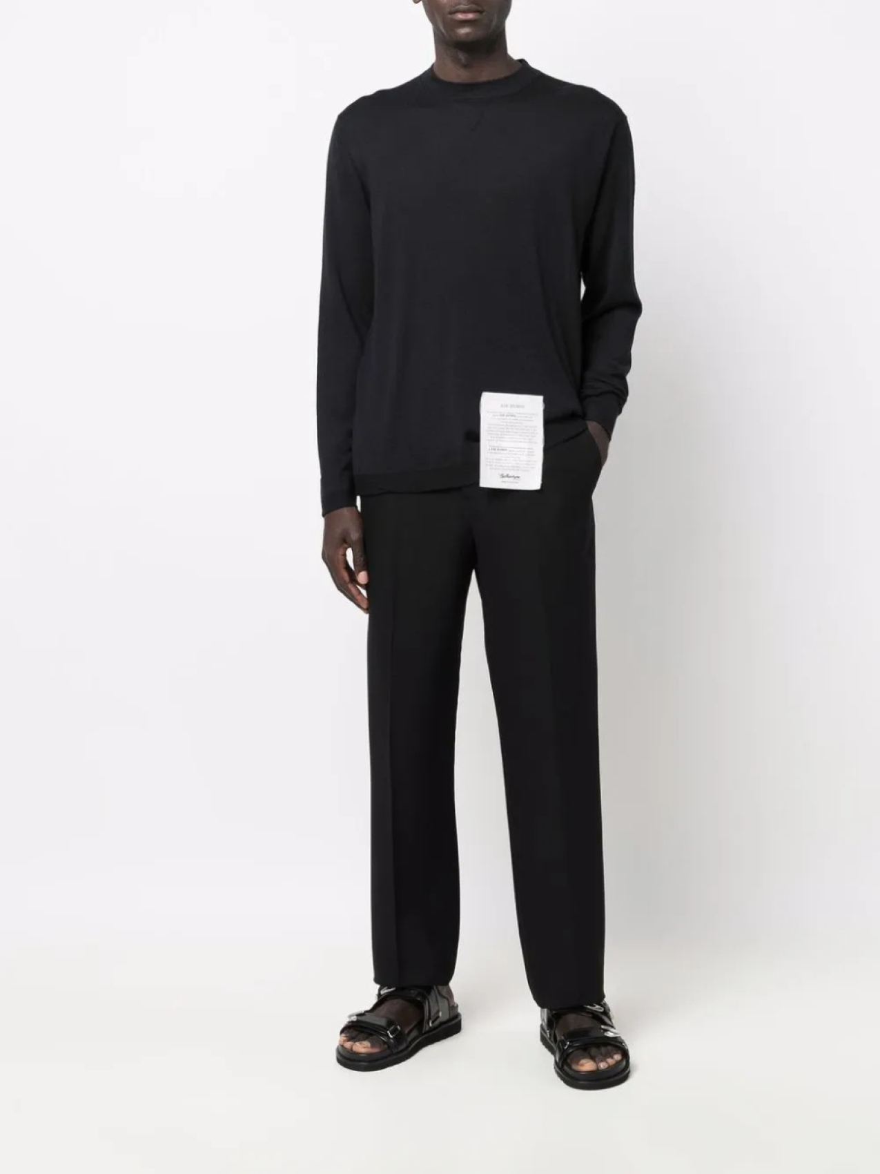 Вязаные края в рубчик, нашивка с логотипом спереди, круглый вырез, длинные рукава и прямой подол. Цвет: черный.