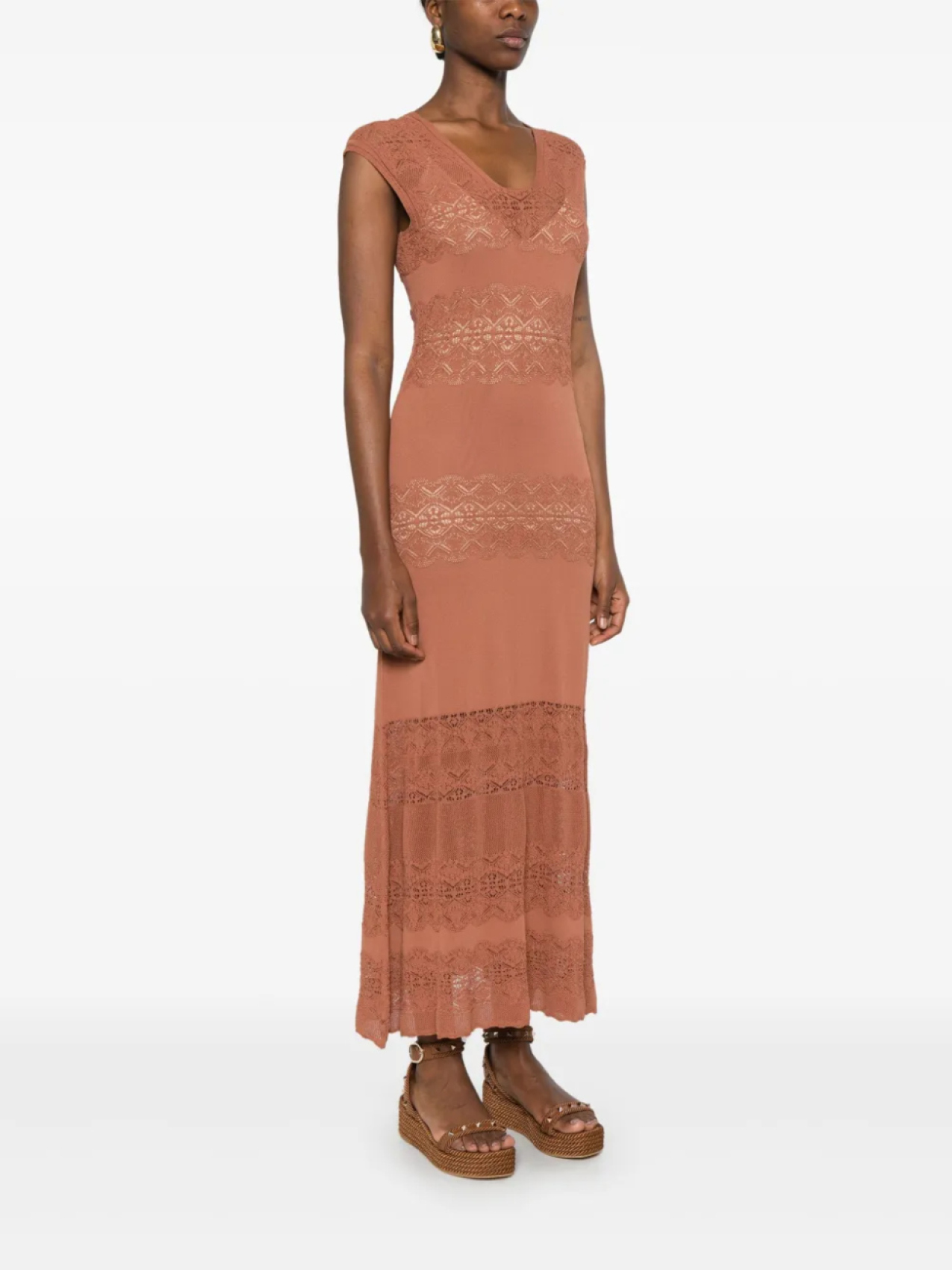 Трикотажное макси-платье TWINSET, коричневый