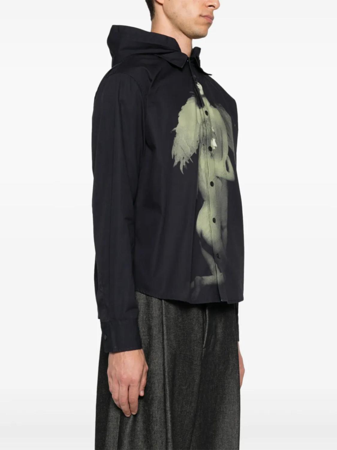 Подробнее о товаре: • черный/зеленый • хлопок • поплин • графичный принт спереди • складки сзади • складки на рукавах • съемный капюшон • классический воротник • длинные рукава с манжетами на пуговицах • застежка на кнопках спереди • закругленный подол сзади • модель без подкладки • Это унисекс-модель. Обратите внимание, что для нее используется мужская размерная сетка.