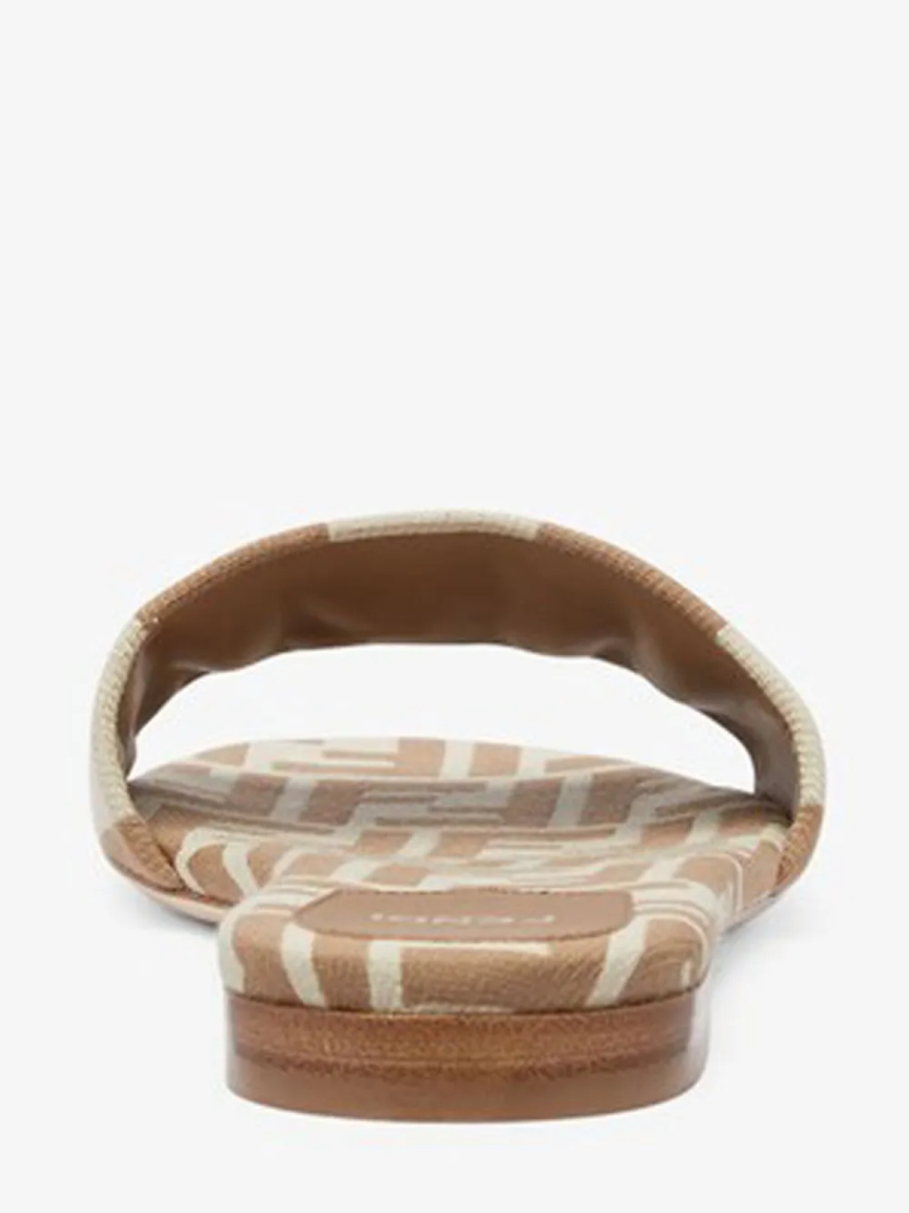 Please be advised that this item is final sale and is not covered by our standard return policy.Wide-band slides. Made of fabric with beige and natural-coloured Pequin stripes. Jacquard fabric sole with the iconic FF motif in the same shades. Beige thread Fendi Roma embroidery. 10 mm heel.