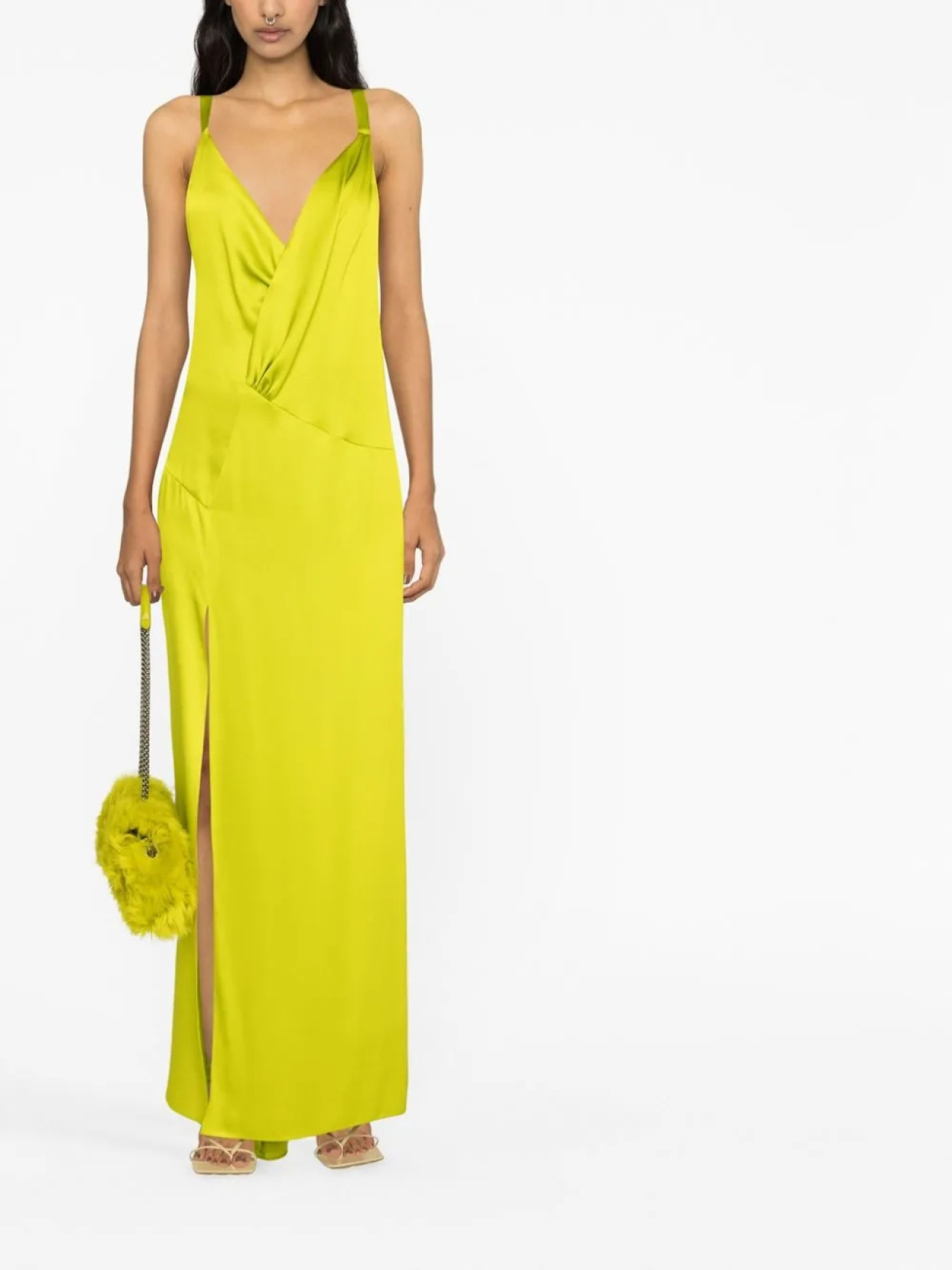 Шелковое платье макси FENDI, зеленый