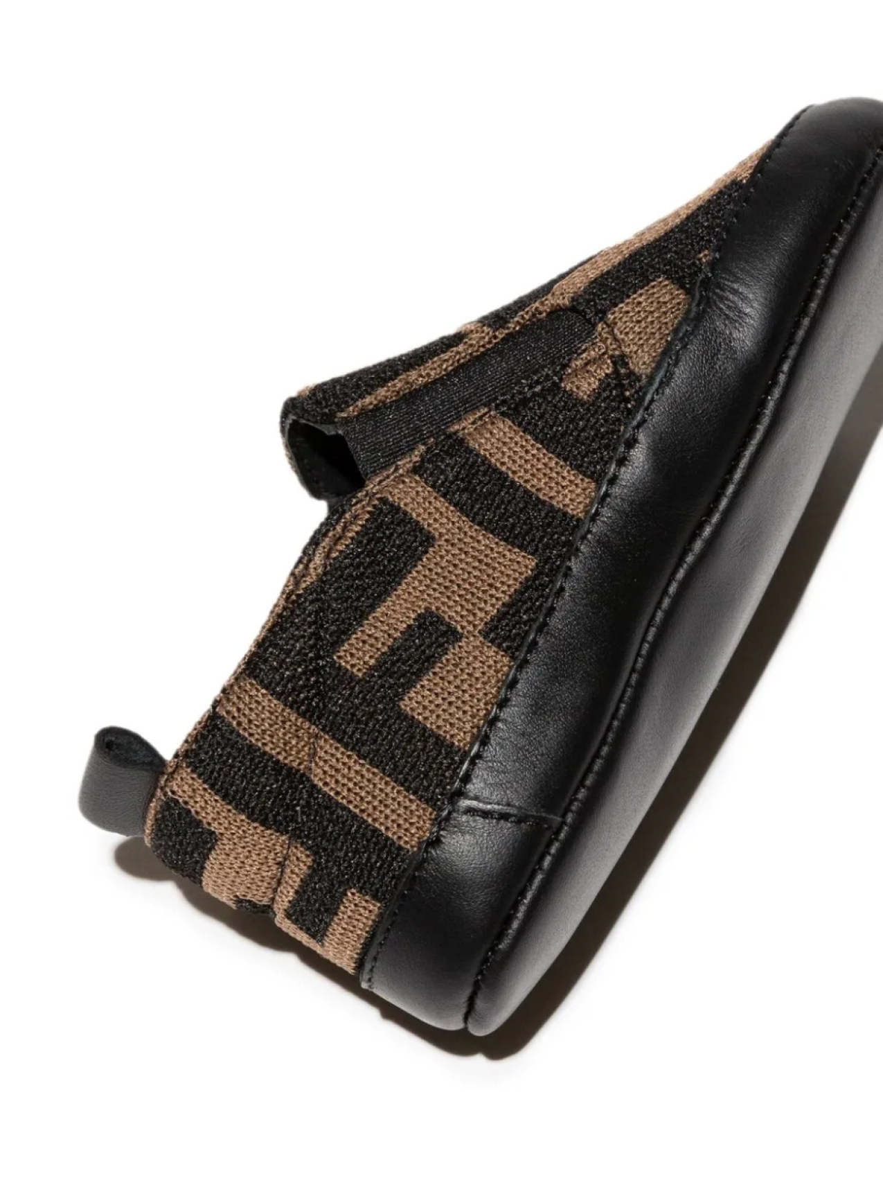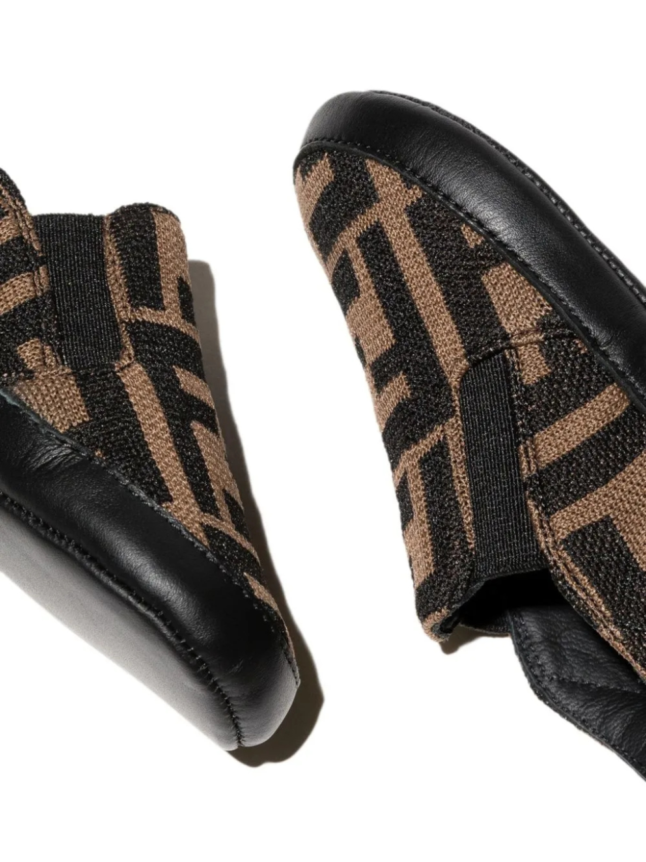 Бежево-коричневый, черный, модель без застежки, узор с монограммой Zucca, эластичные боковые вставки, петля для подтягивания сзади, закругленный носок, стелька с логотипом и плоская кожаная подошва.