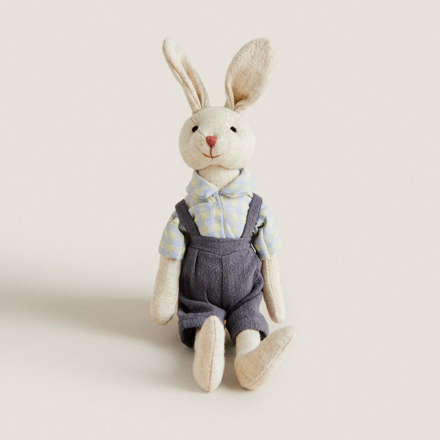 Мягкая игрушка Зайчик в комбинезоне и клетчатой рубашке.