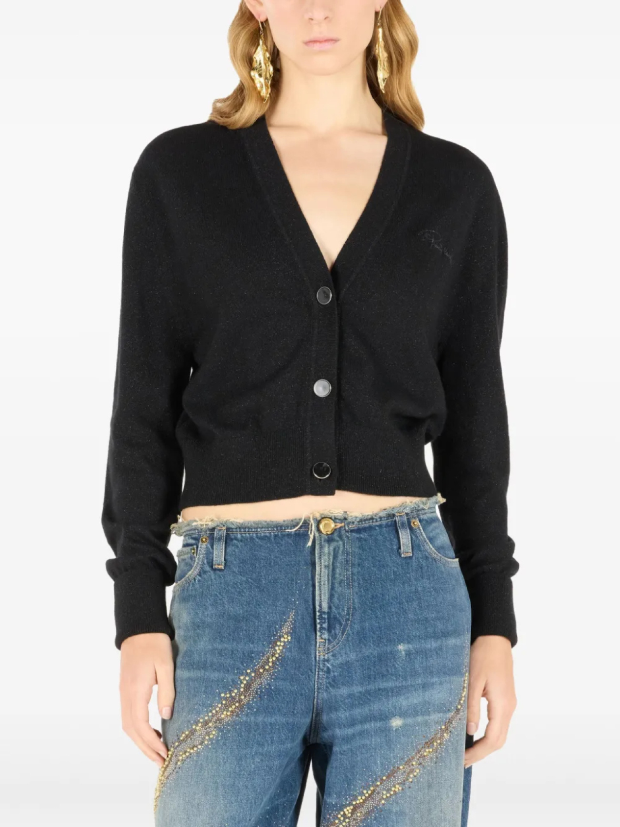 Укороченный кардиган на пуговицах Roberto Cavalli, черный