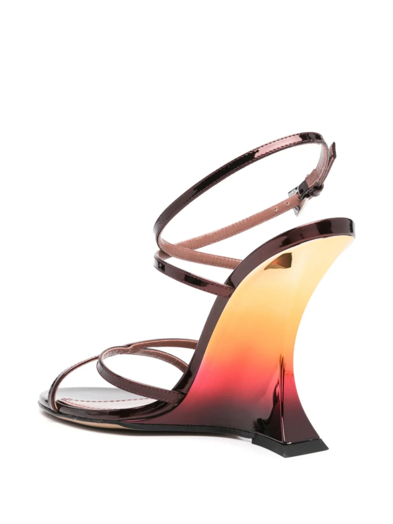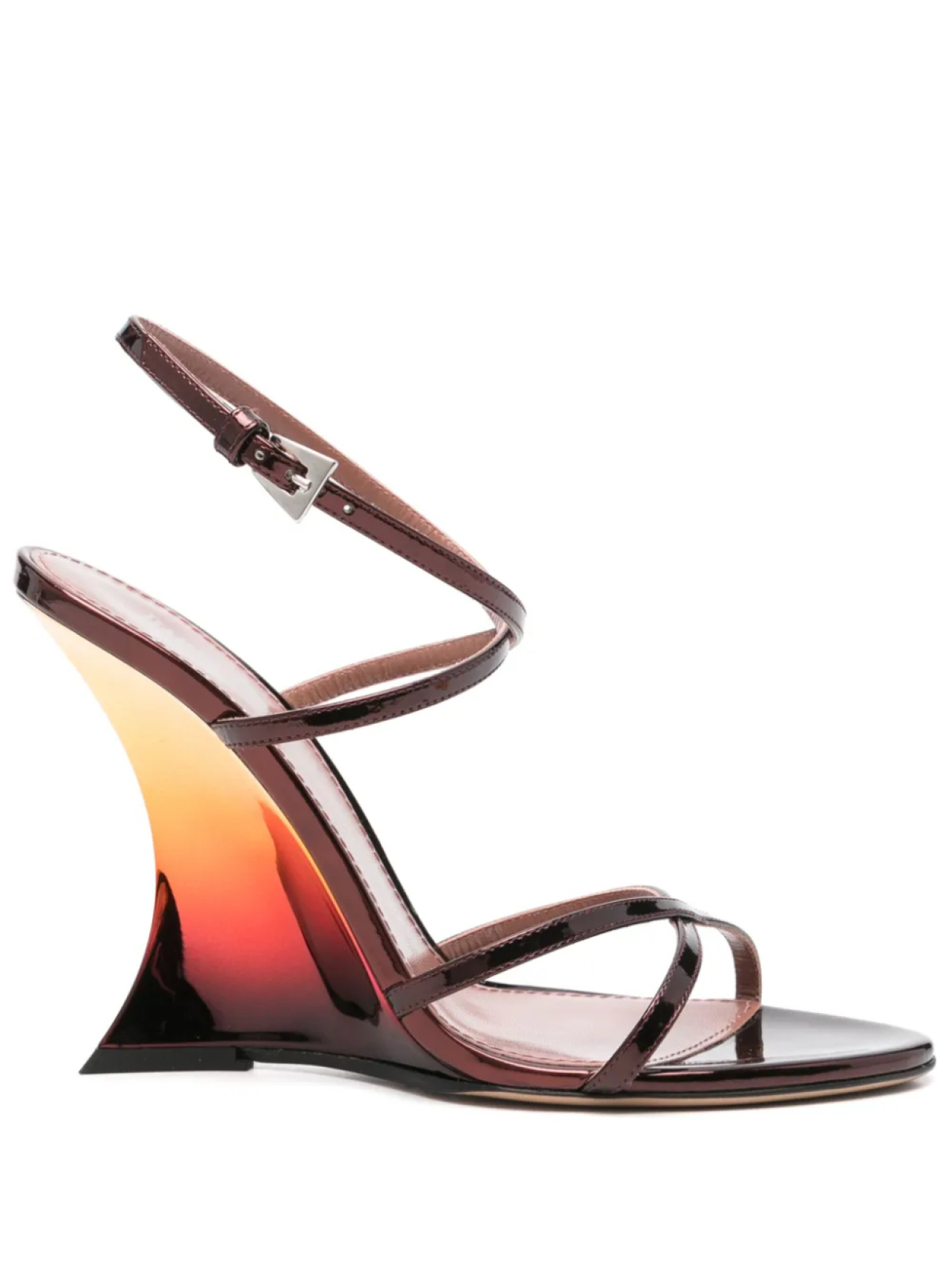 Ремешок на щиколотке с пряжкой кроваво-красного цвета, клиновидный каблук, перекрещивающиеся ремешки