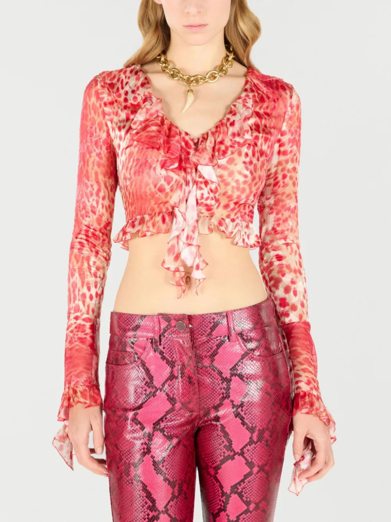 Блузка с принтом «Ягуар» Roberto Cavalli, красный 66 255₽
