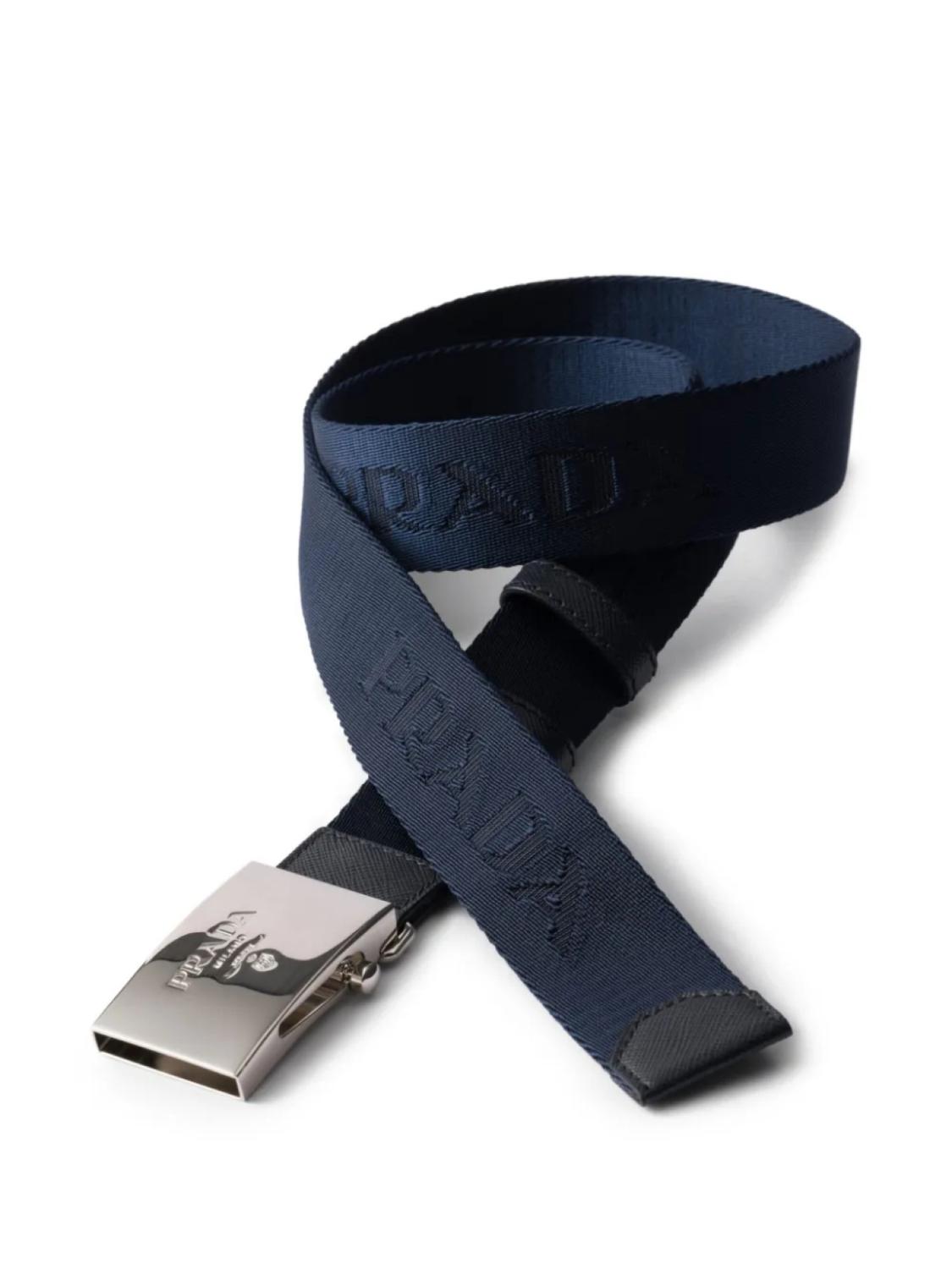 Ремень с тисненым логотипом Prada, синий