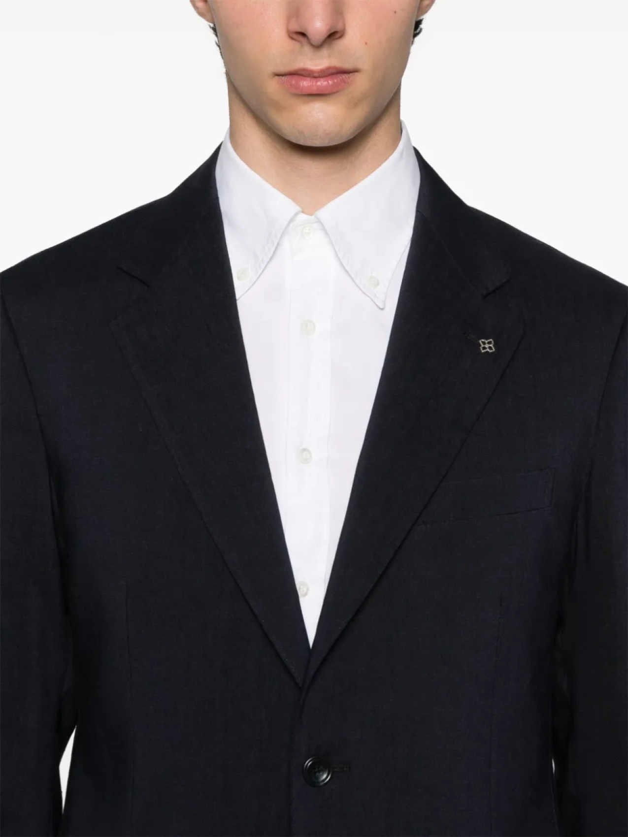 Темно-синяя застежка на пуговицы спереди, потайная застежка на пуговицы, английские шлицы сзади, шлевки для ремня