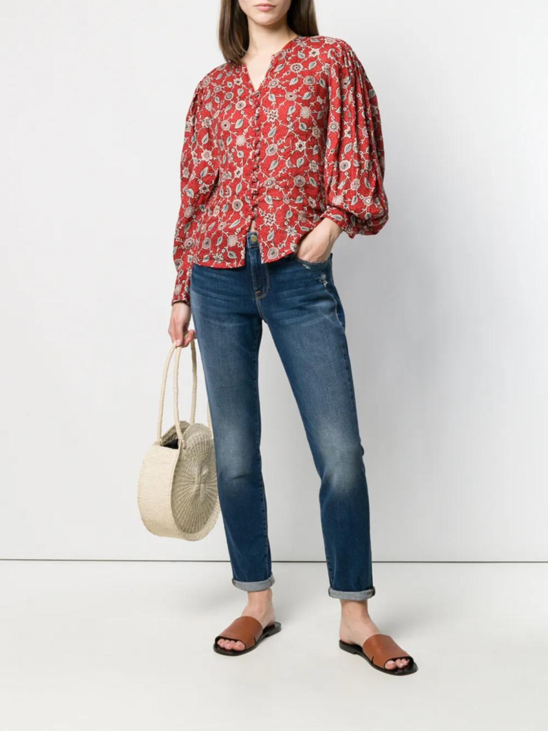 Джинсы Le Garcon от Frame. Петли для ремня, ширинка на молнии с пуговицей, классическая пятикарманная модель, эффект потертости и узкий крой.