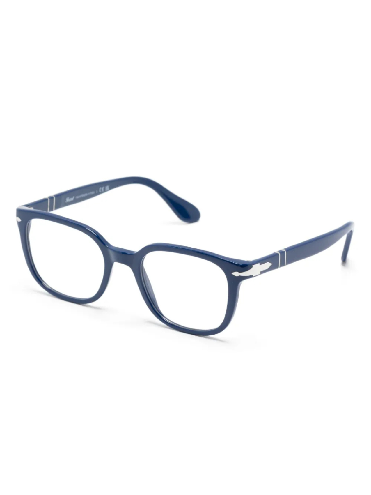 Темно-синий, ацетат, квадратная оправа, прозрачные линзы, серебристый металлический логотип, прямые дужки и дужки с закругленными концами. Обратите внимание, что на FARFETCH продаются оправы с линзами без диоптрий. В комплект входит защитный чехол для очков.