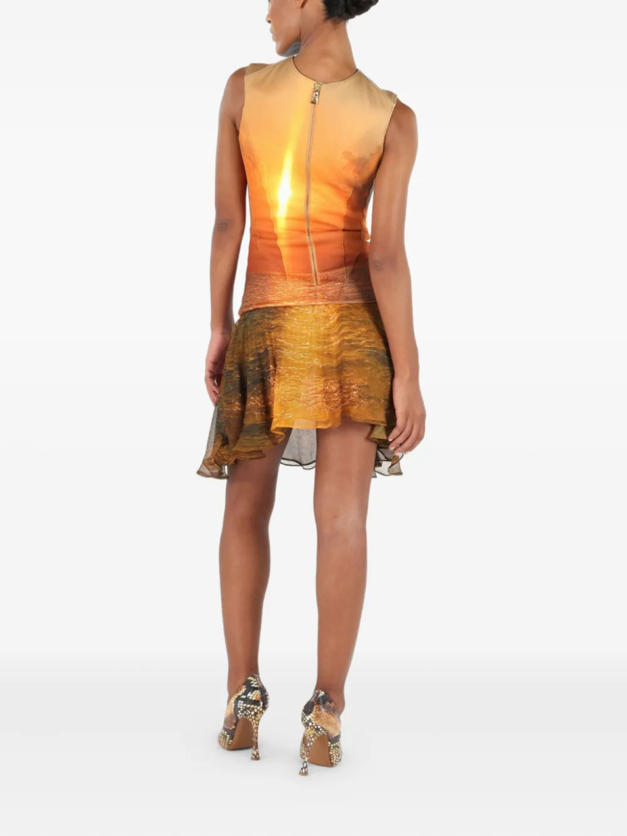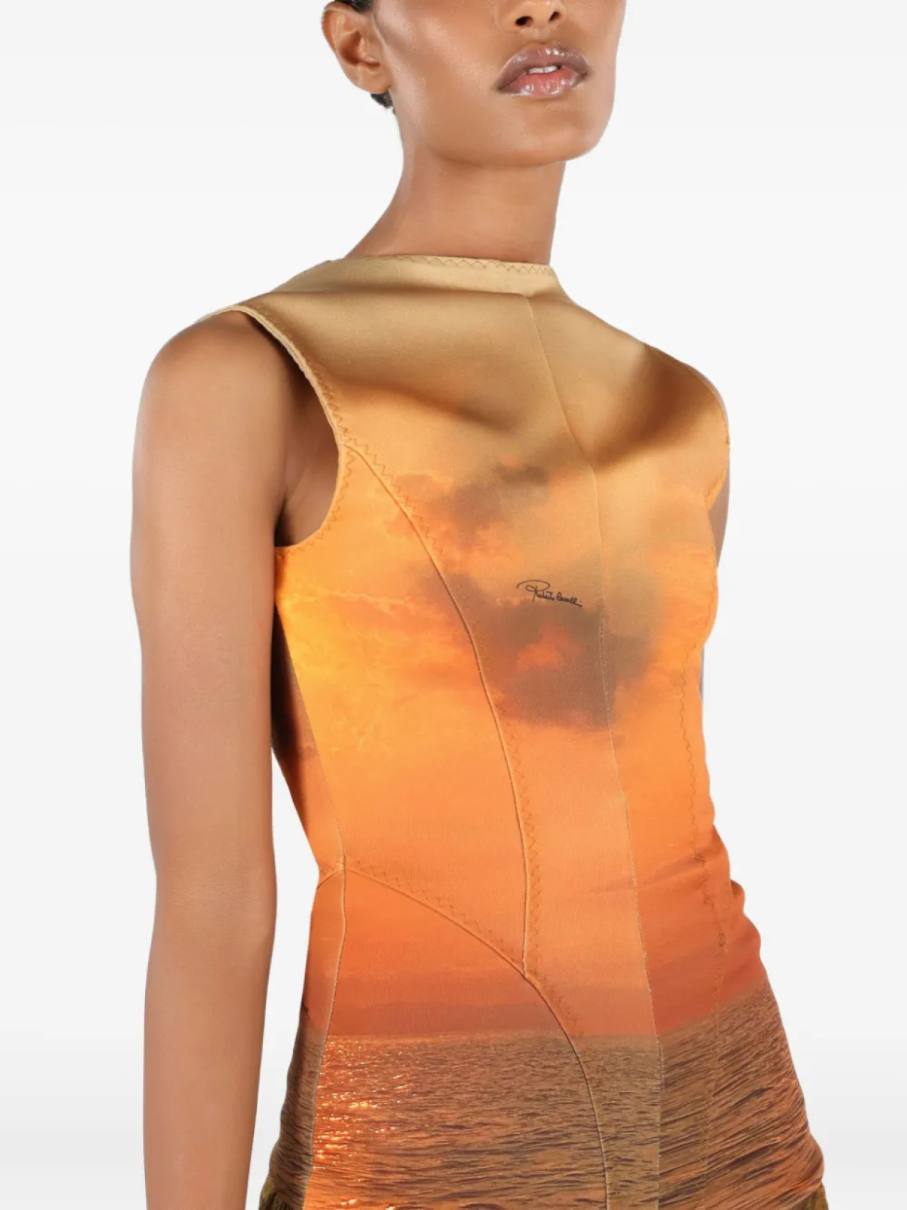 Платье мини с абстрактным принтом Roberto Cavalli, оранжевый