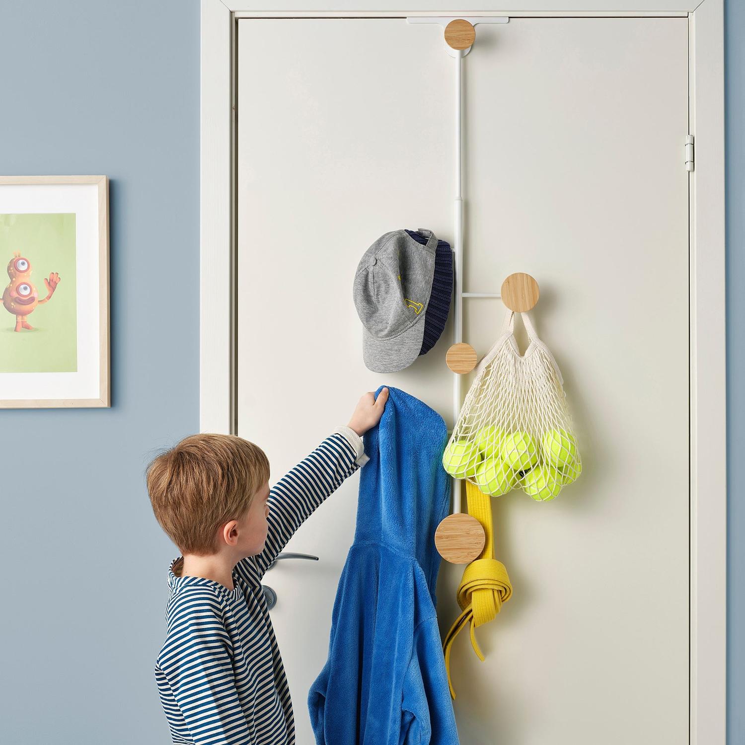 Подвешивается на верхний край двери — идеально подходит для халата, сумок и одежды, которую еще не пора положить в корзину для белья.
