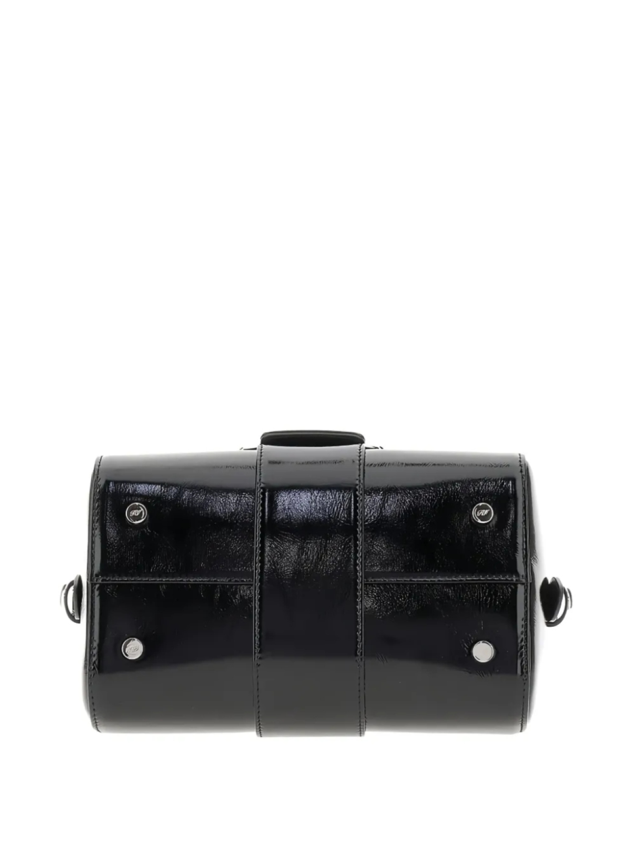 Черная полированная отделка, серебристая фурнитура, две верхние ручки, съемный плечевой ремень, основное отделение, застежка-молния, внешняя пряжка, боковые карманы