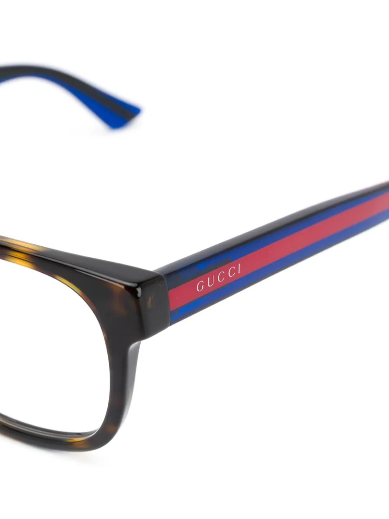 Очки в квадратной оправе от Gucci Eyewear. Эффект черепашьего панциря, квадратная оправа и логотип на рукаве. Прилагается защитный чехол.
