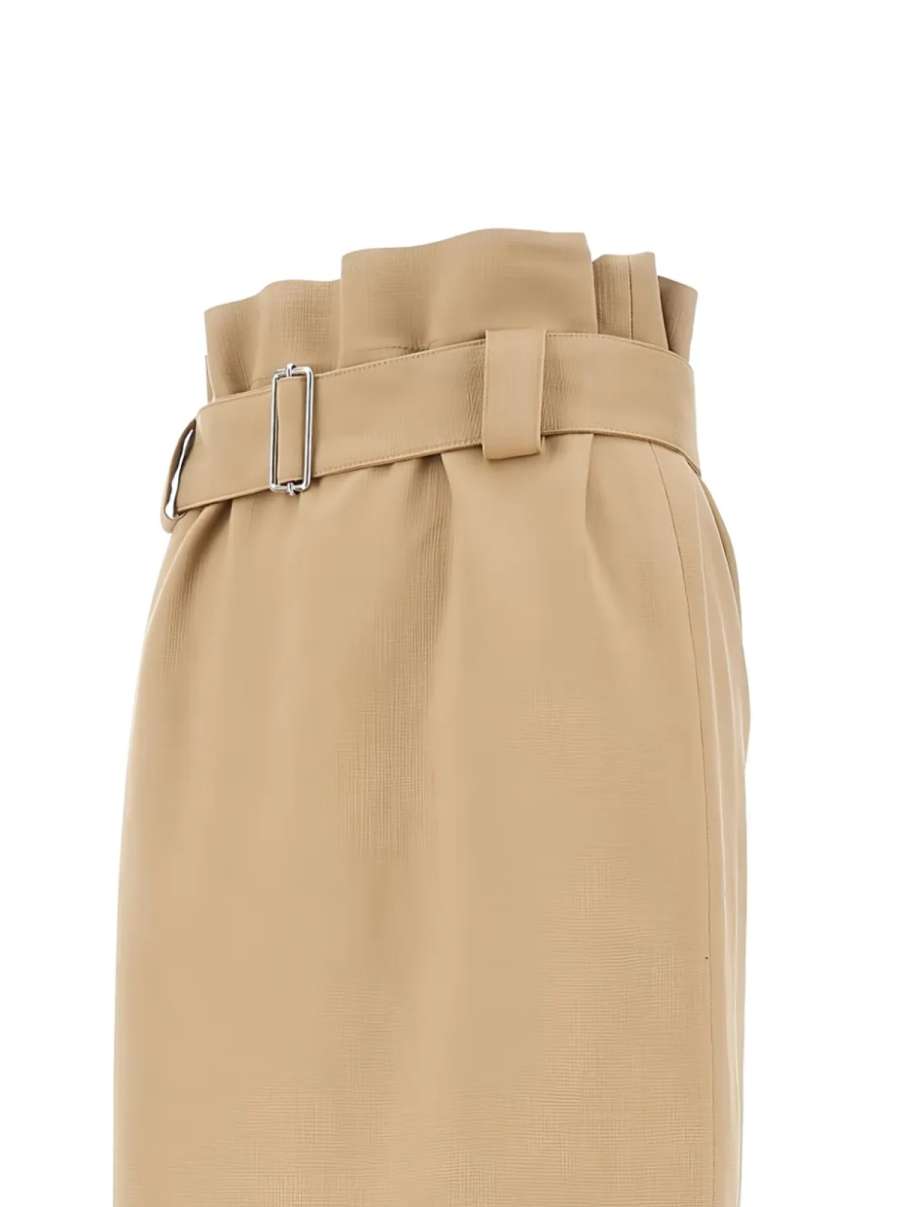 Бежевый пояс на талии, складка, потайная застежка сбоку, изящный приталенный дизайн, шлица сзади