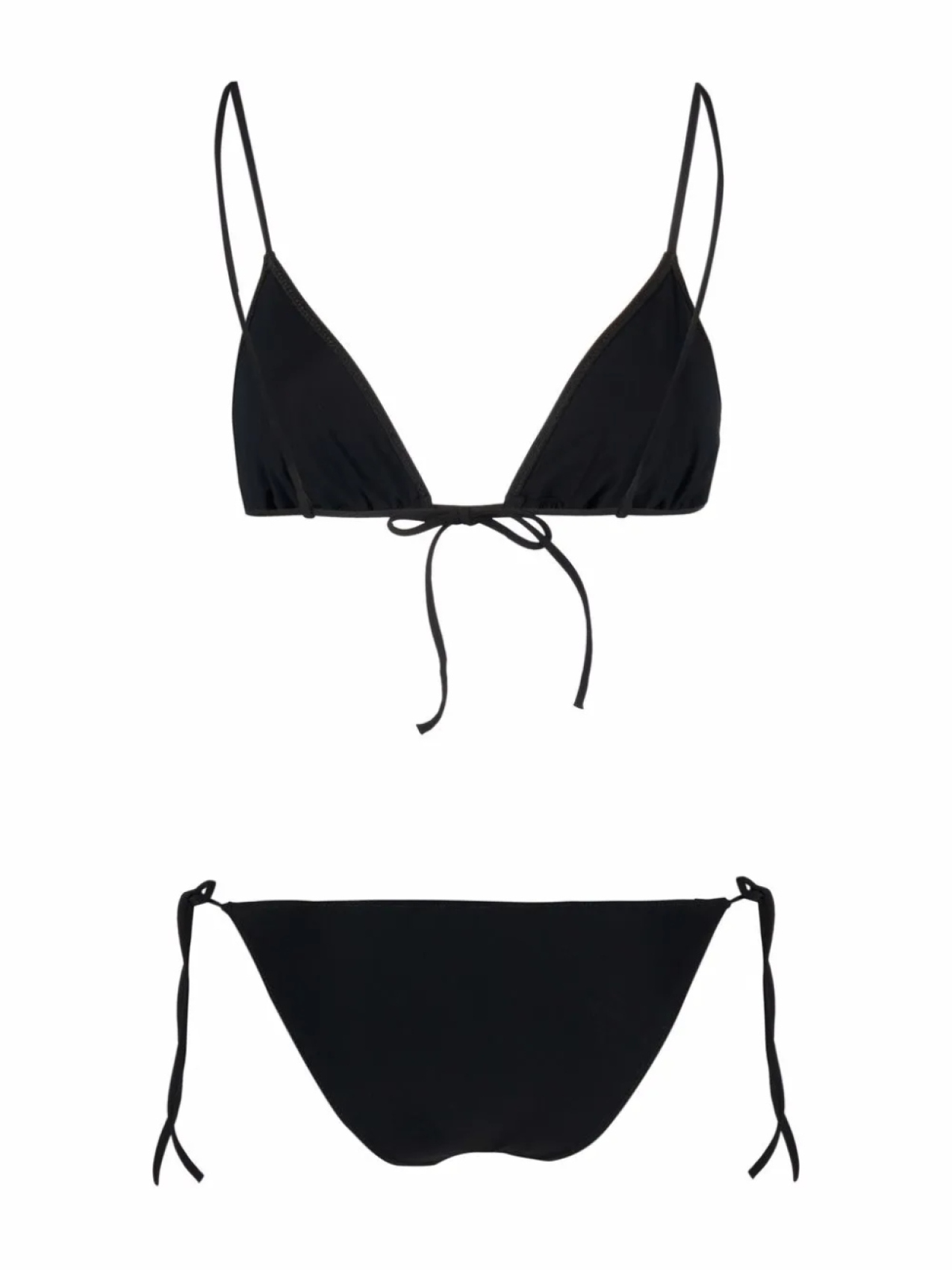 Набор из двух предметов, эластичная модель, застежка на завязке сзади, тонкие бретели, треугольная чашка, завязки по бокам и средняя посадка. Цвет: черный. Пожалуйста, примеряйте купальники и пляжные шорты только поверх собственного белья.