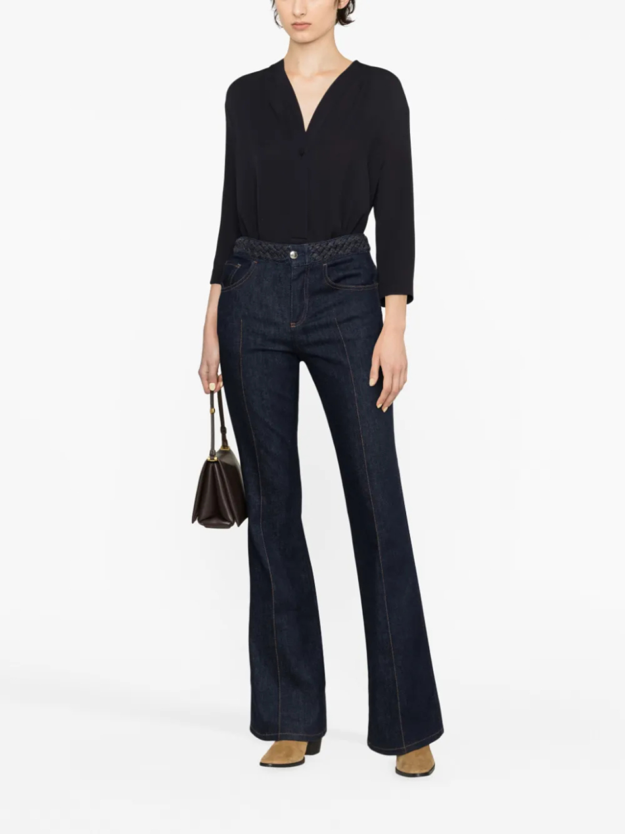 Шелковая блузка с V-образным вырезом Giorgio Armani, синий 139 623₽