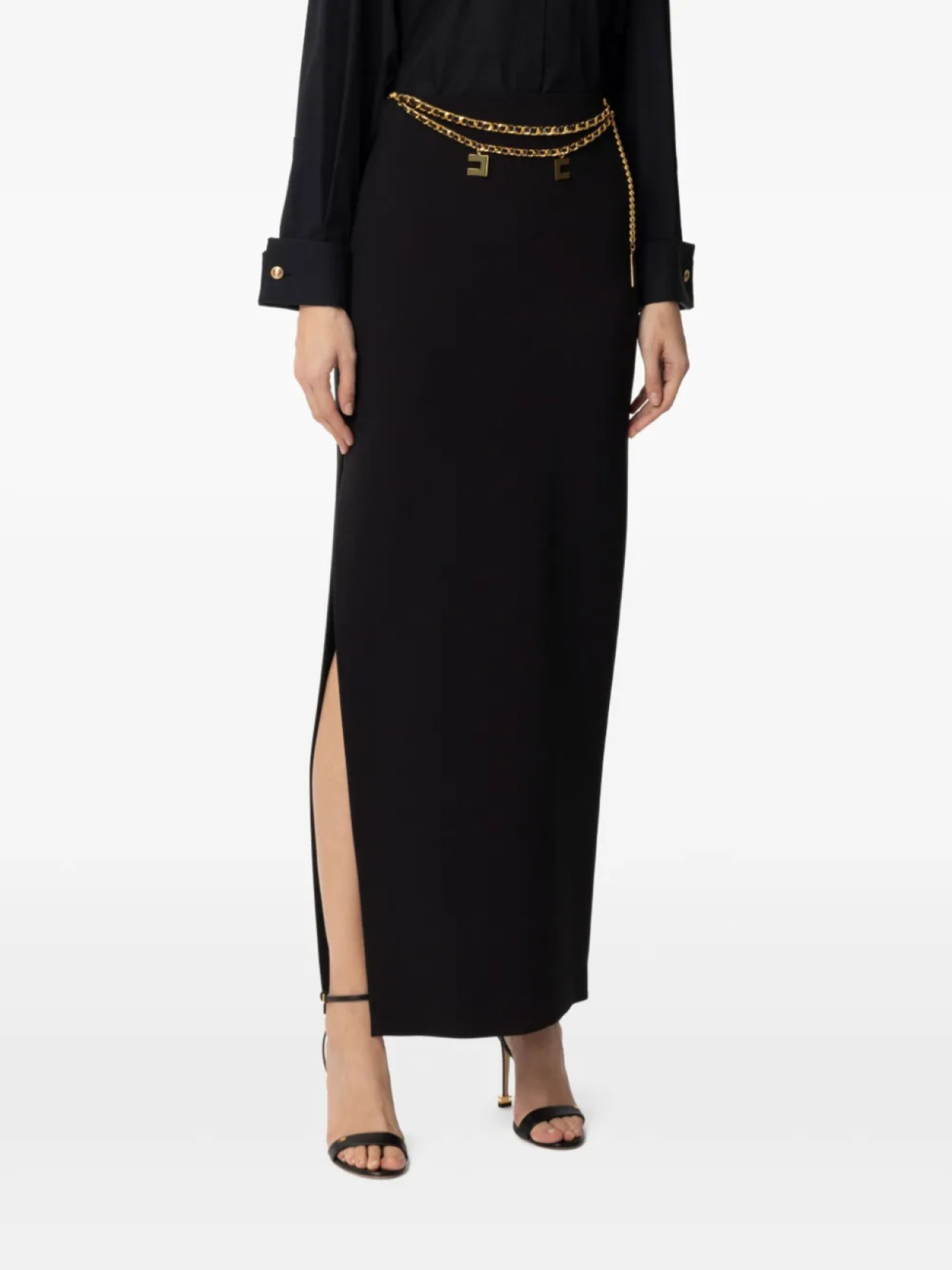 Креповая юбка макси с цепочкой Elisabetta Franchi, черный 49 655₽