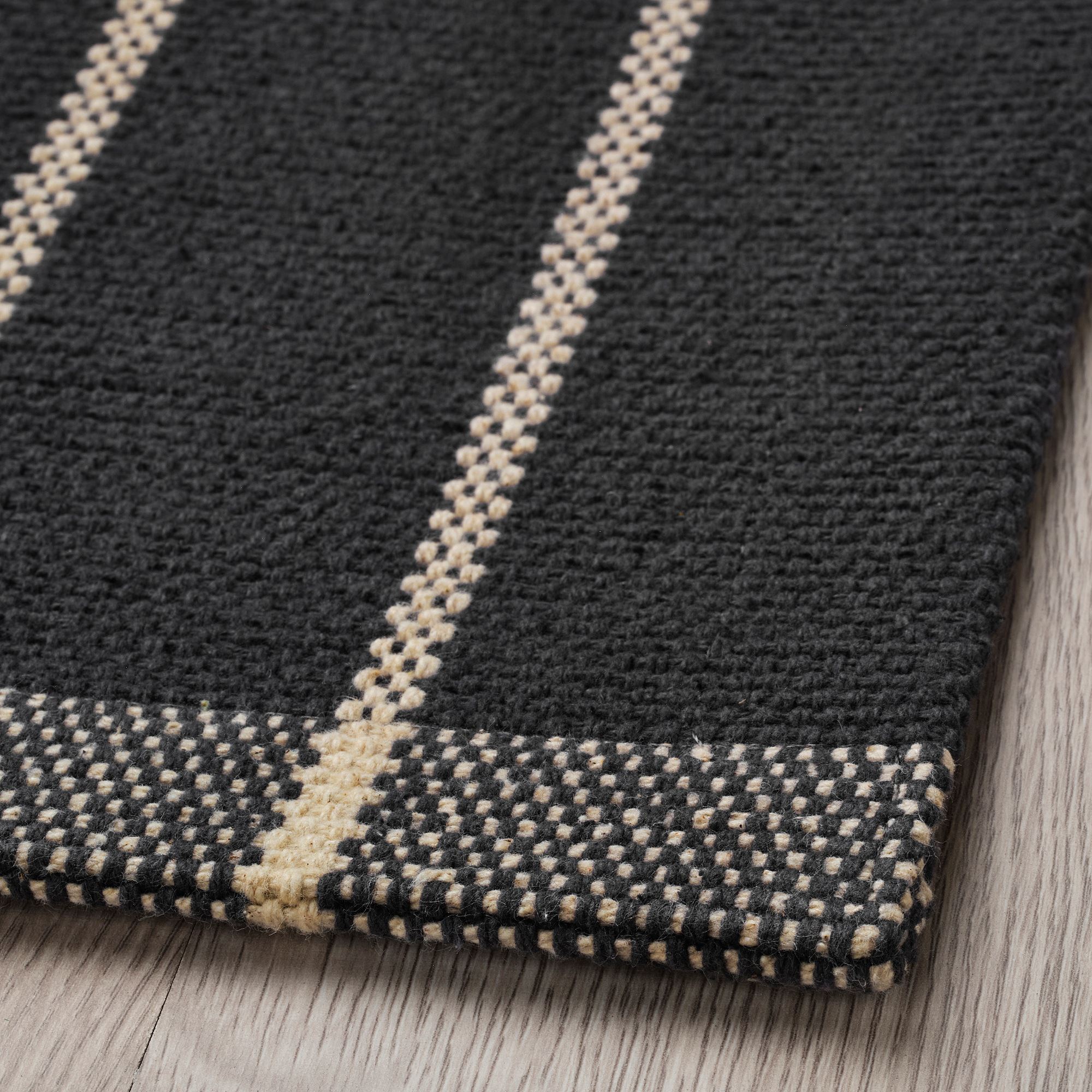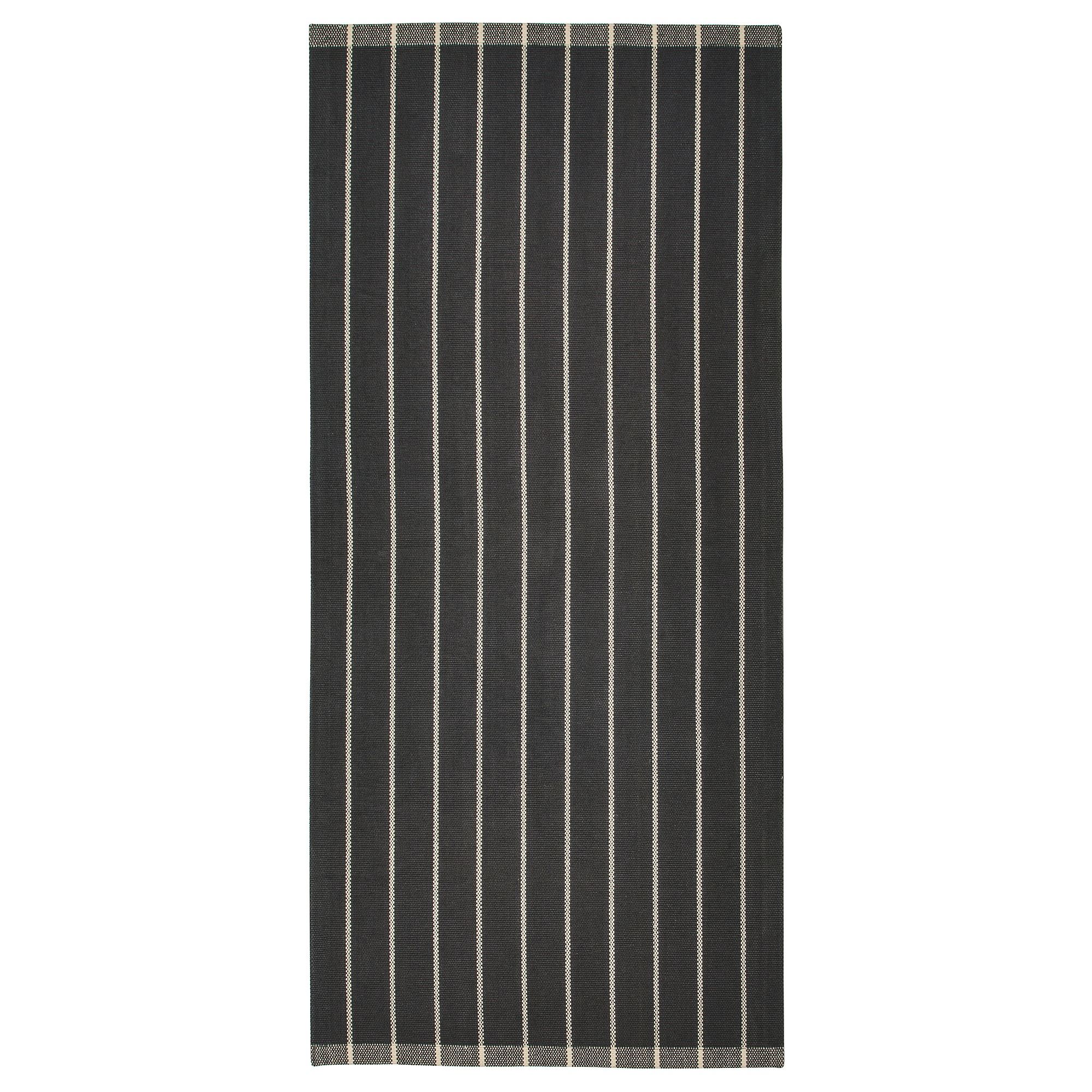 Коврик из хлопка, приятный для ног, серого цвета с рисунком в полоску, слегка белого цвета. Коврик соткан без намотки и идеально подходит по размеру для коридоров и кухонь. Легко пылесосить и стирать в стиральной машине, поэтому он сохранит свой свежий вид.