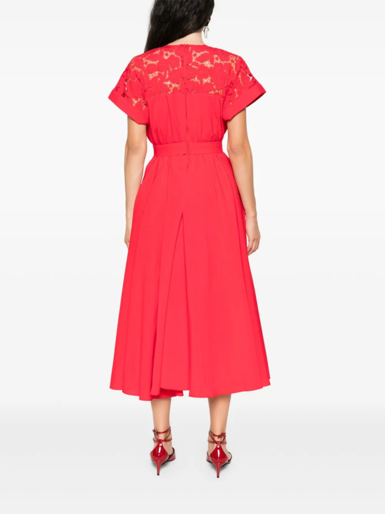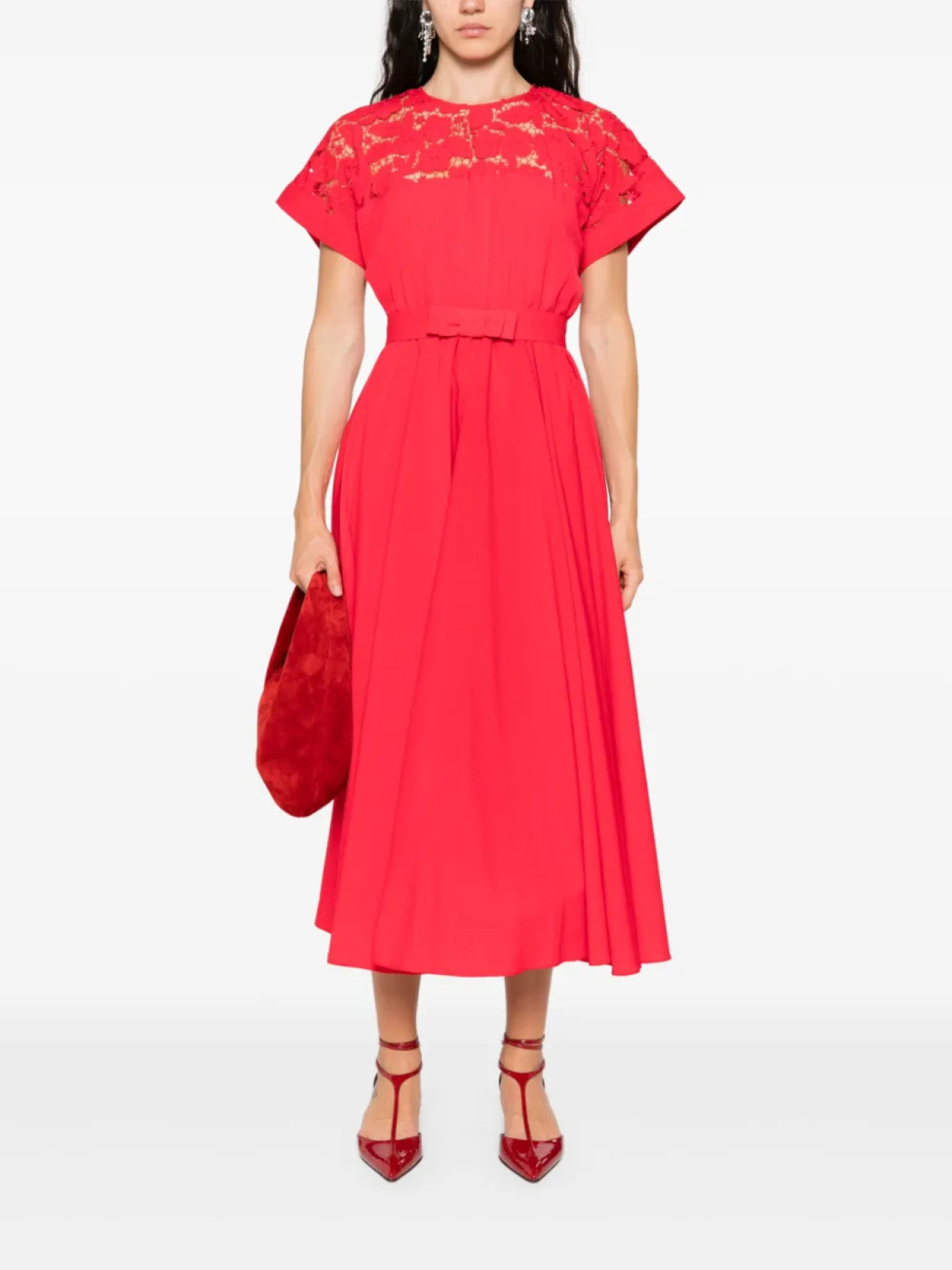 Платье миди с кружевными вставками NISSA, красный