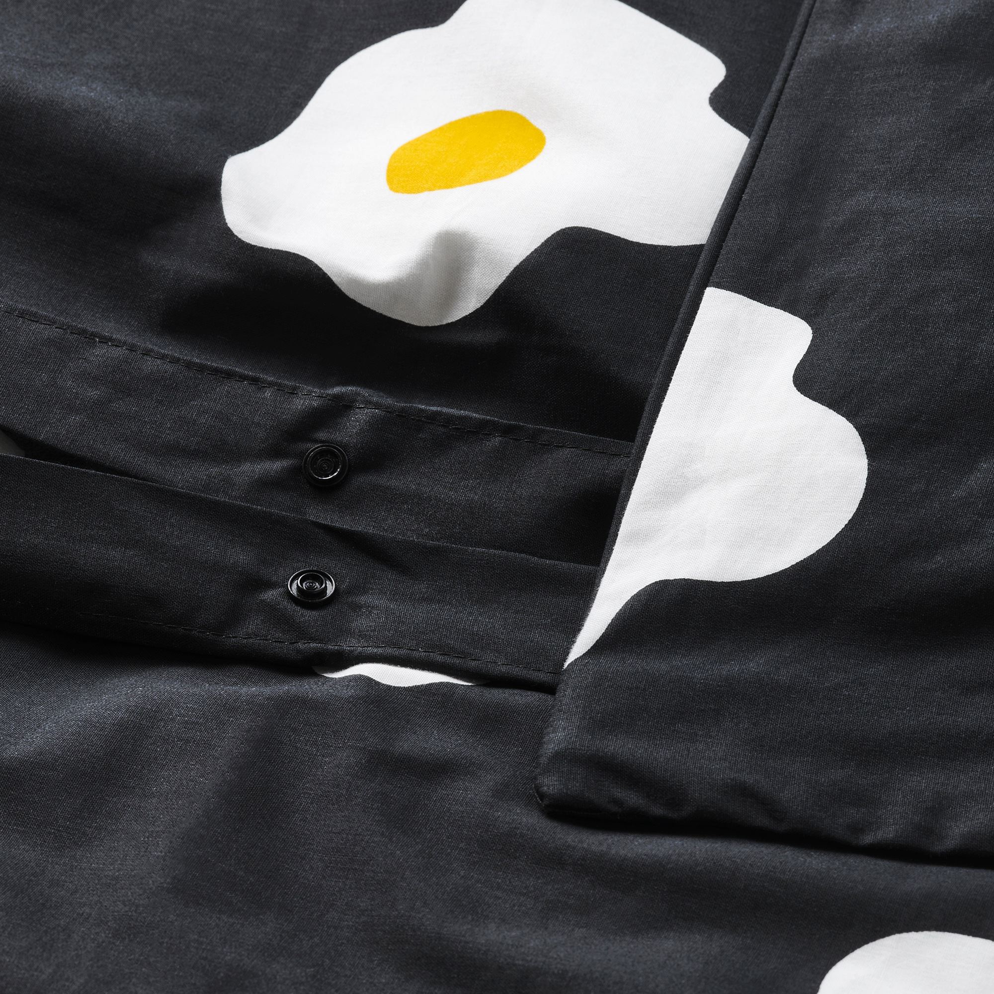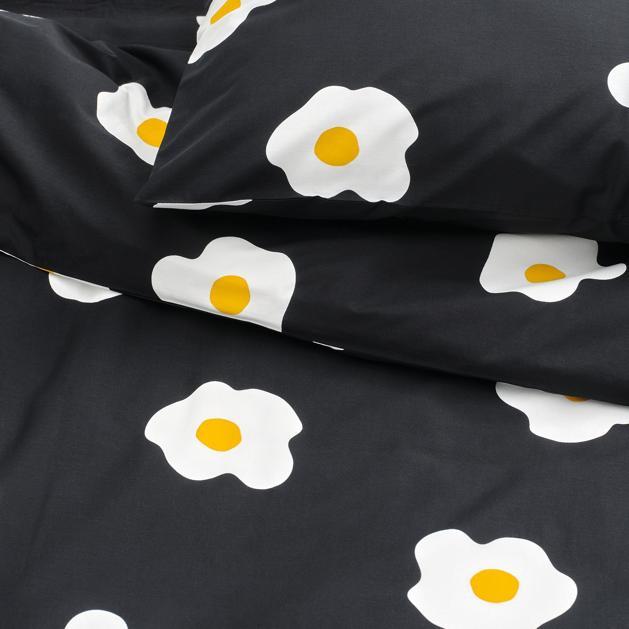 Это клумба с цветами или яйца-солнечные глазки? Ханна Уилкокс разработала комплект пододеяльников ÖGONLOCKSMAL с огоньком в глазах. Изготовлен из мягкой смеси хлопка и вискозы, которая дышит и имеет тонкий блеск.