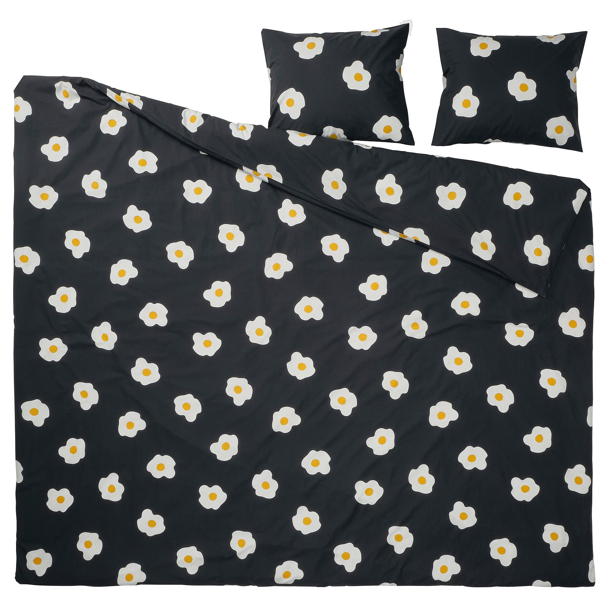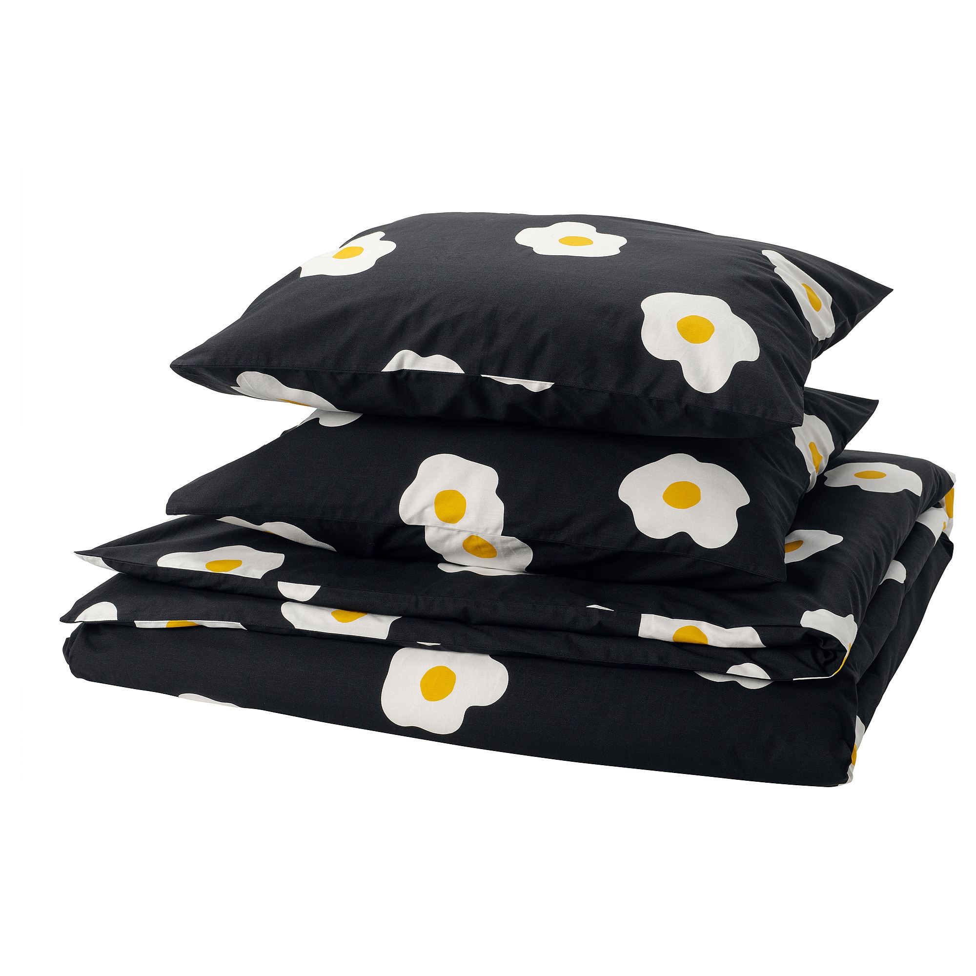 Двойной пододеяльник и 2 наволочки ÖGONLOCKSMAL черно-бело-желтый