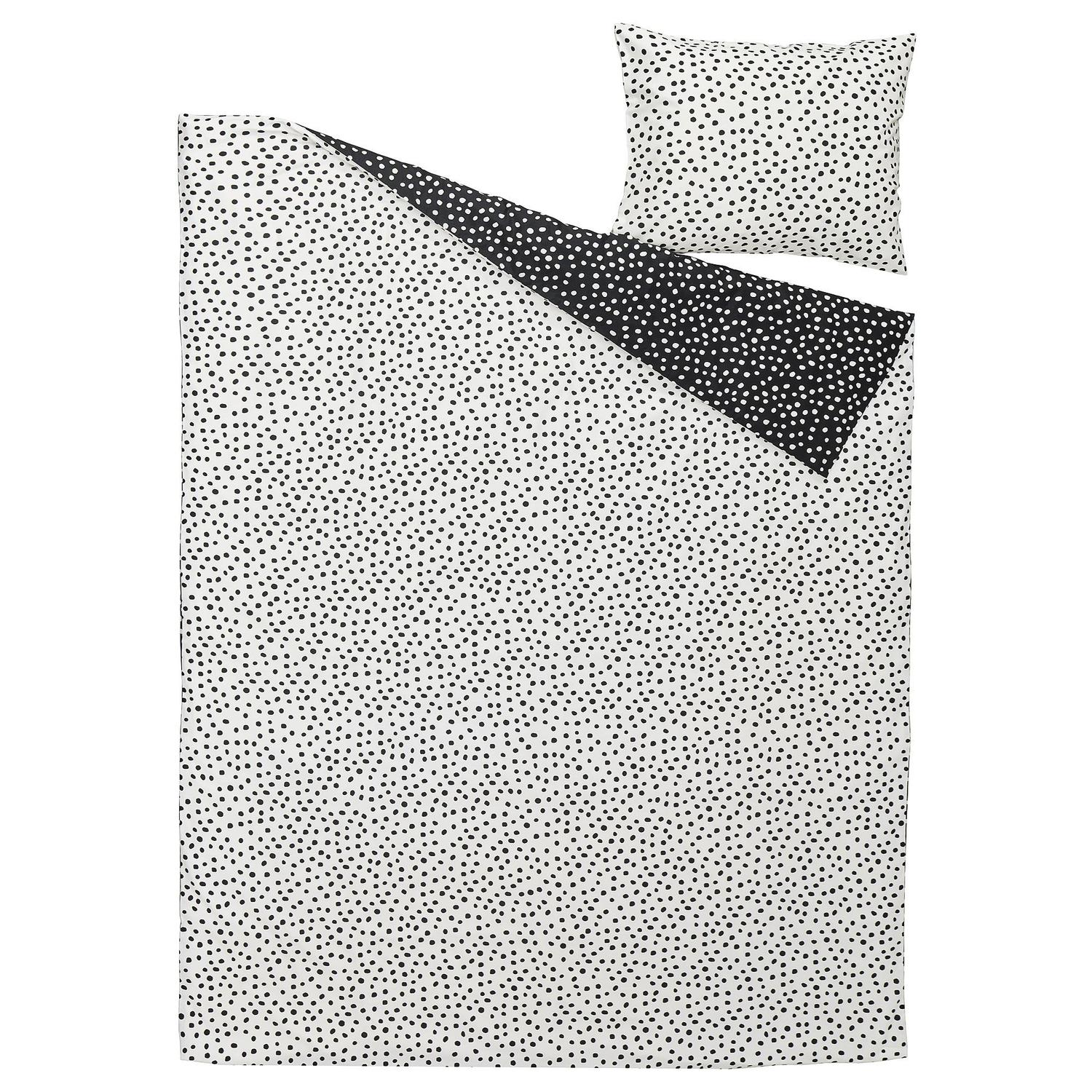 Черные точки на белом фоне или наоборот? Пусть ваше настроение решает. Этот комплект пододеяльников подходит к большинству интерьеров и соткан из смеси хлопка и вискозы, которая невероятно мягкая на ощупь.