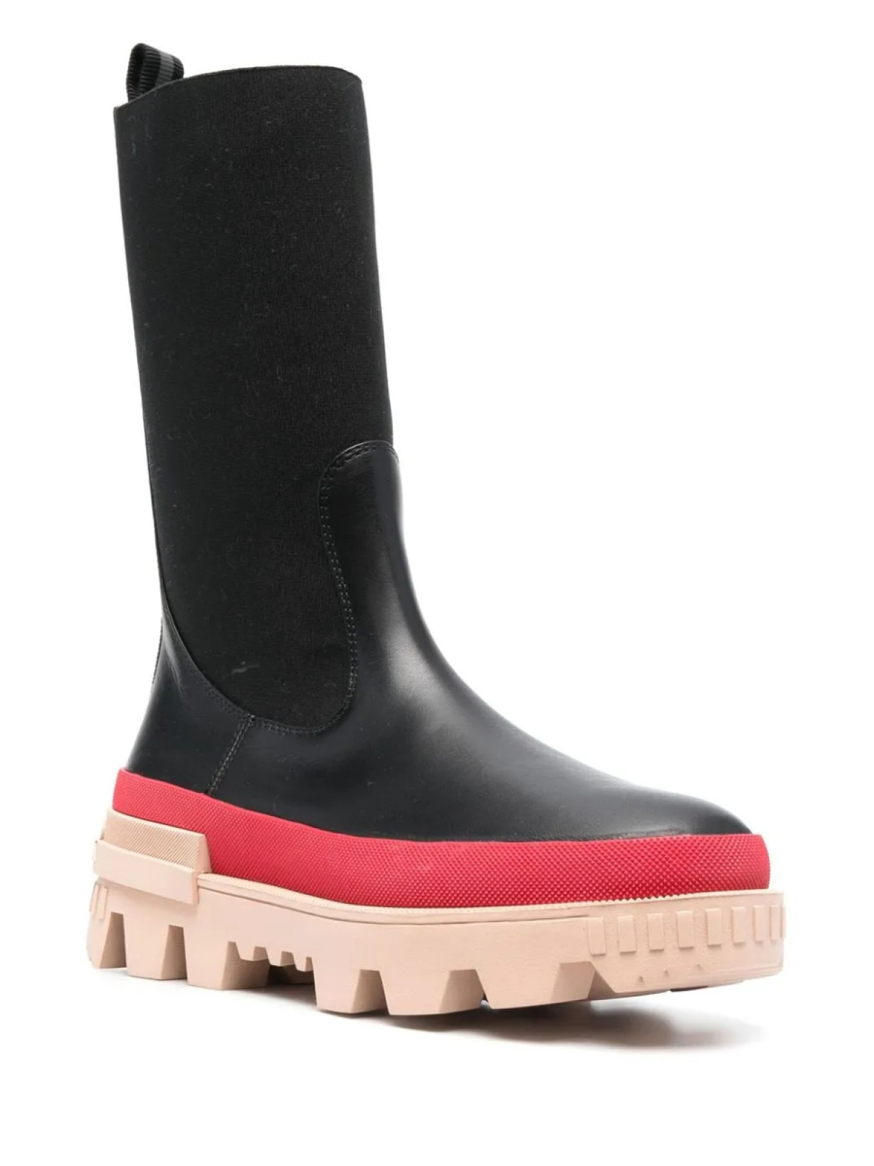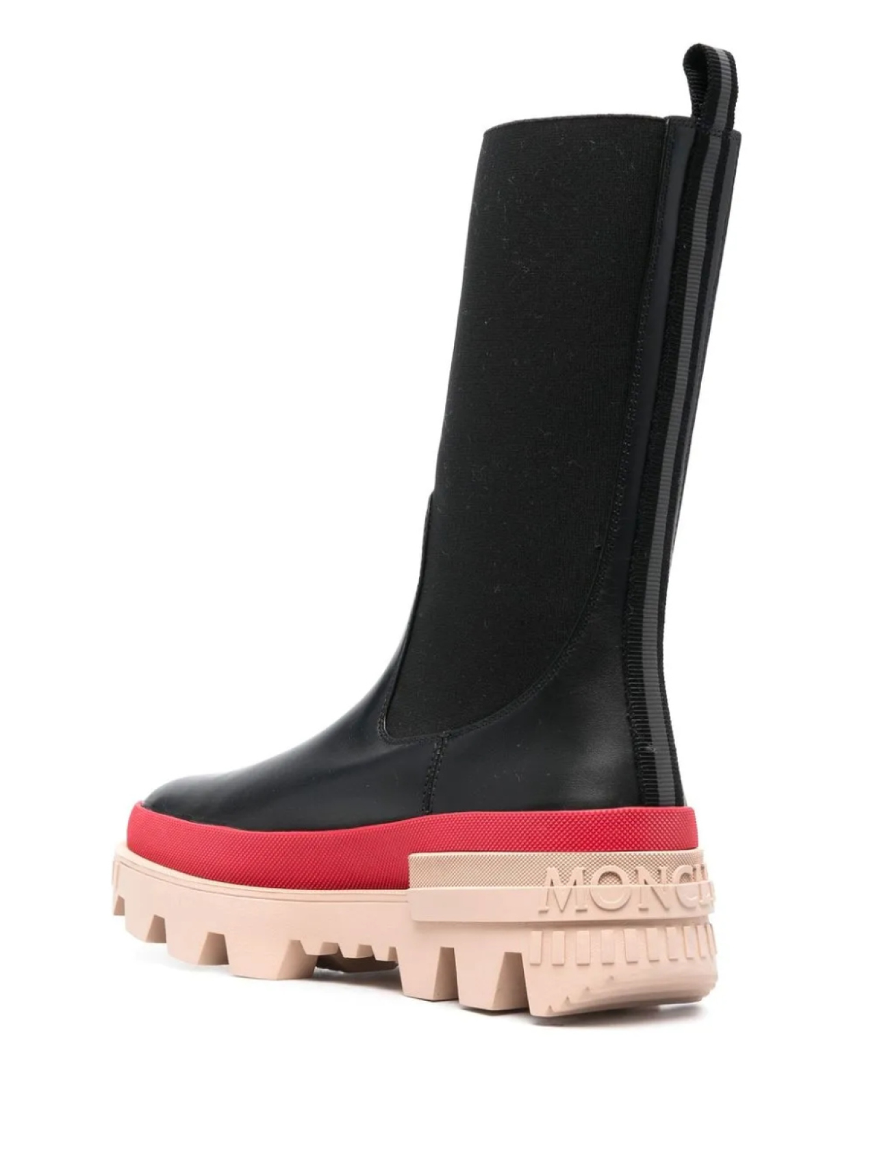 Черный/красный, бежевый, телячья кожа, дизайн колор-блок, тисненый логотип сзади, эластичный носок, петля для подтягивания сзади, закругленный носок, массивная резиновая подошва c протектором и модель без застежки.