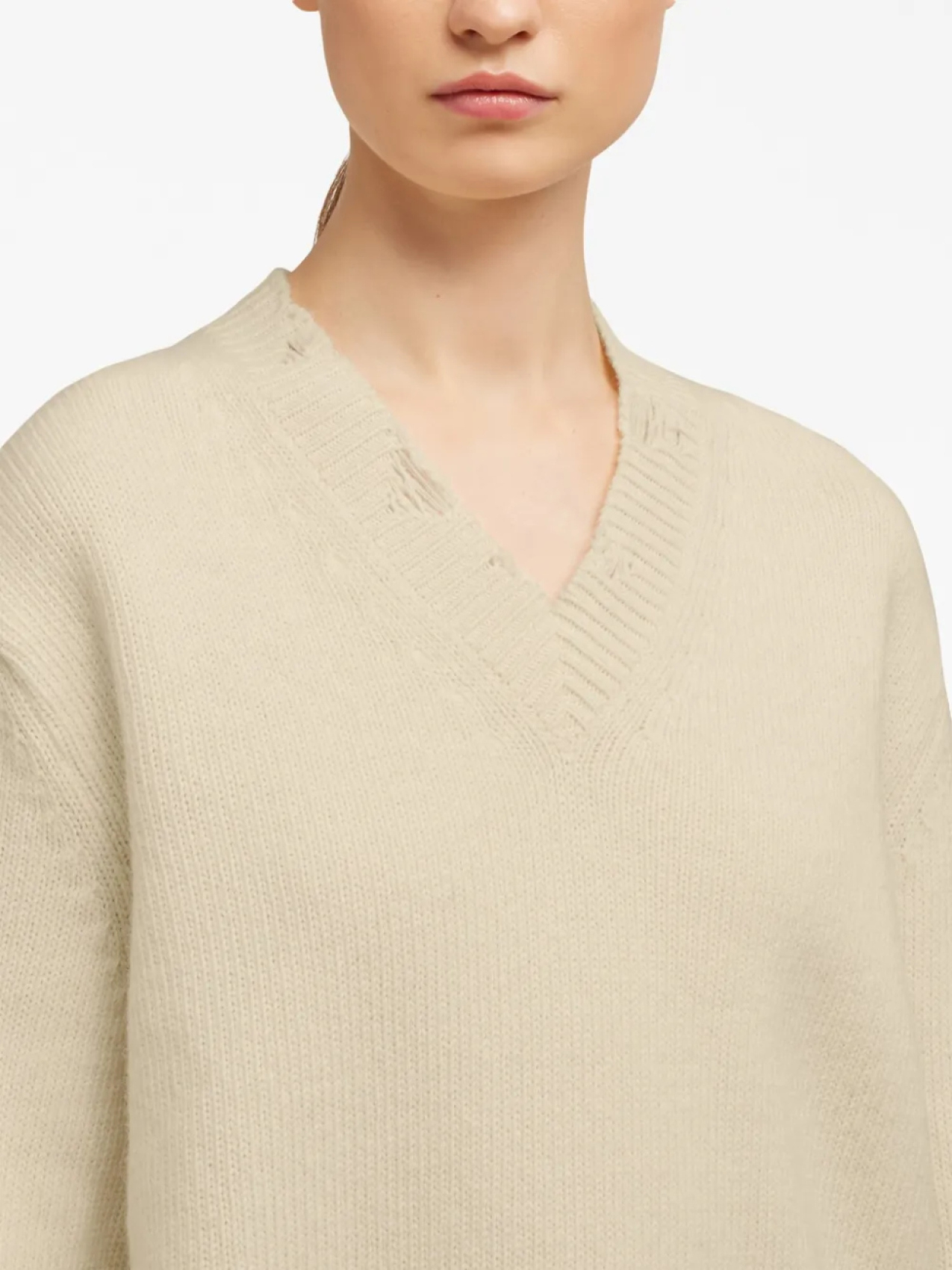 Джемпер с V-образным вырезом в рубчик AMI Paris, нейтральный