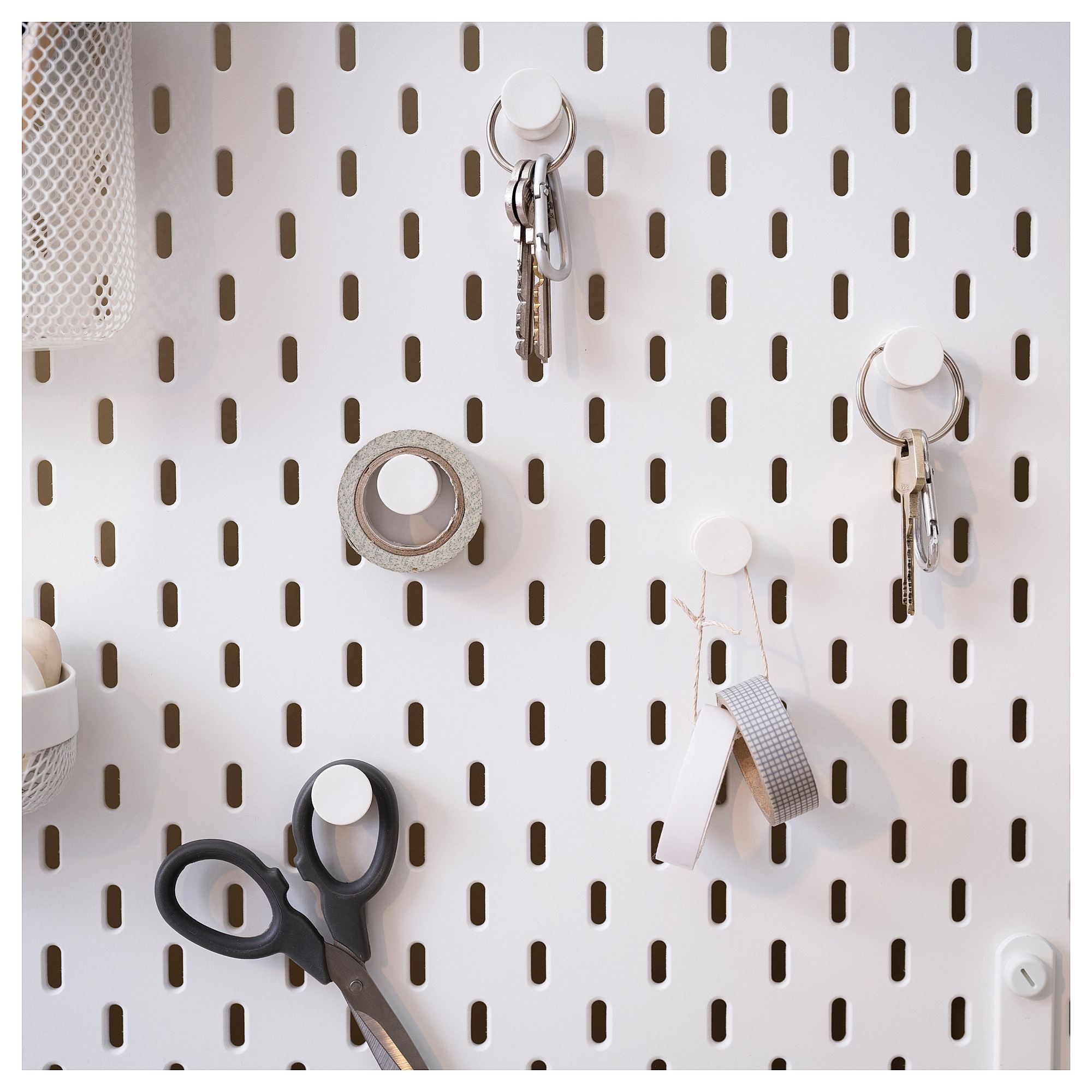 Крючки — это разумный способ организовать хранение таких вещей, как ключи и украшения, на перфорированной доске SKÅDIS.