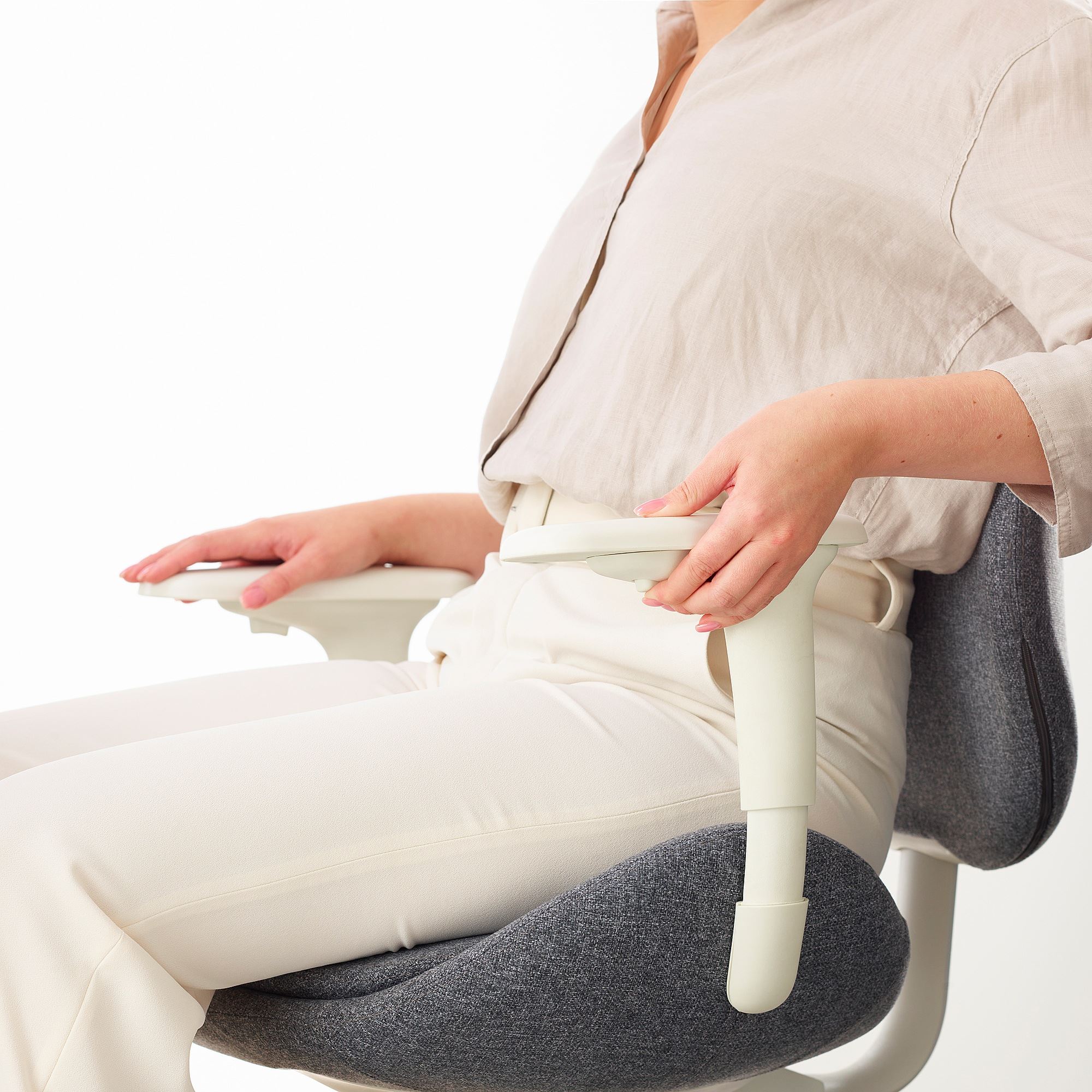 Регулируемые по высоте и ширине подлокотники обеспечивают расслабленное положение рук и плеч и снижают риск напряжения, усталости и болей в плечах и шее.