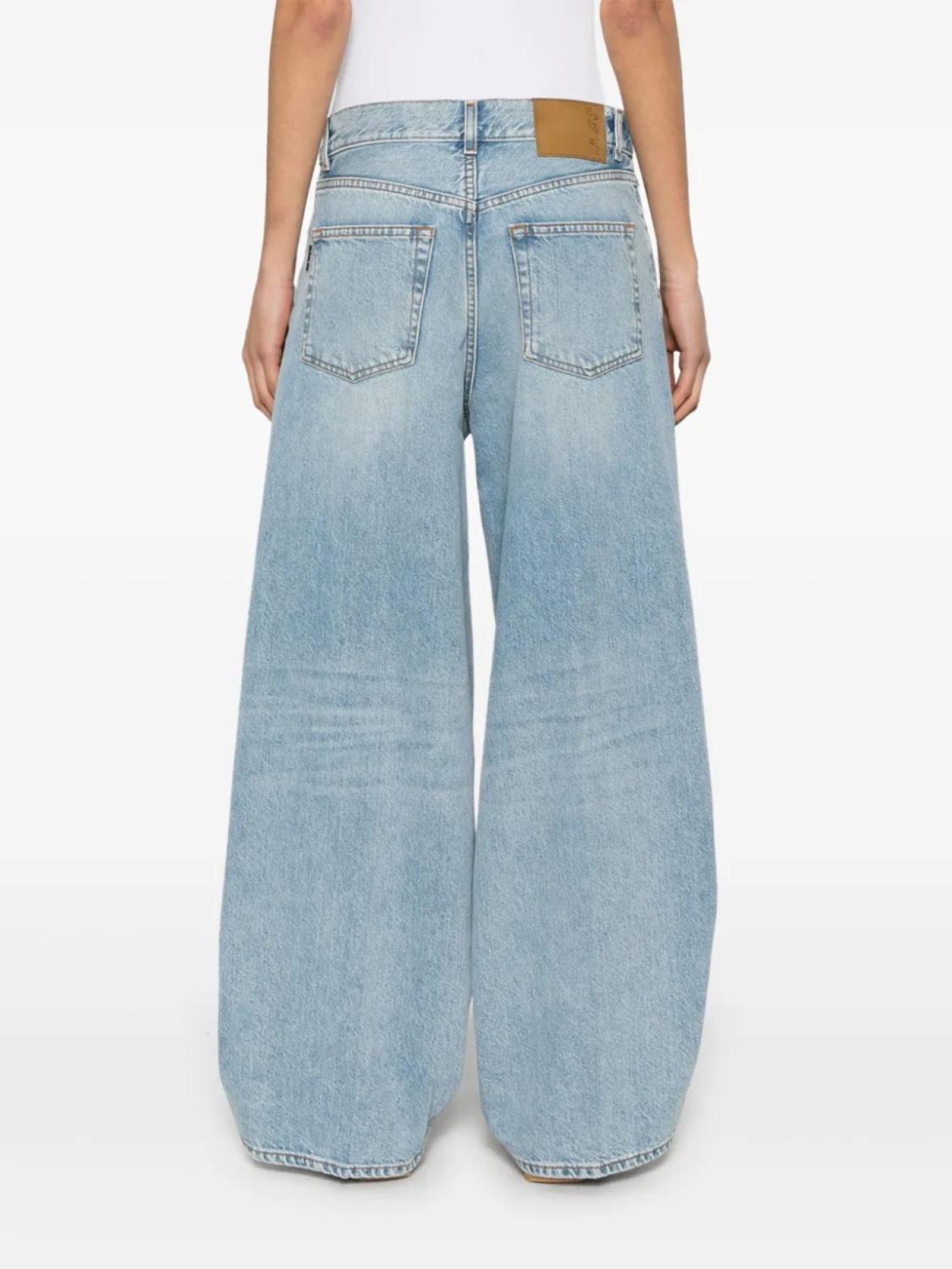 Светло-голубая застежка на пуговицы, классические пять карманов, шлевки для ремня, нашивка с логотипом сзади