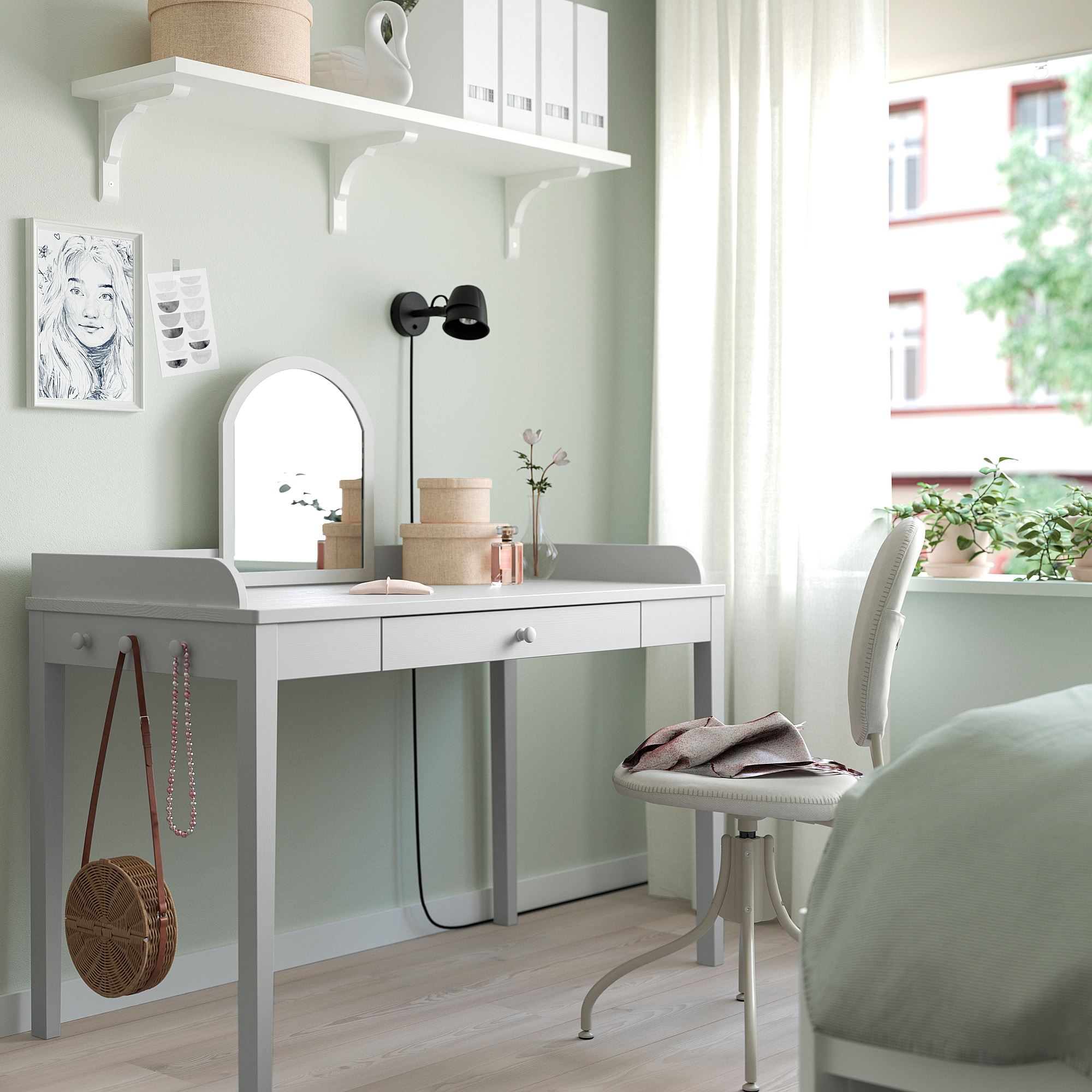 Рабочая зона достаточно большая (60x120 см) и подходит как для учебы, так и для занятий творчеством или для установки двух компьютерных мониторов рядом друг с другом.