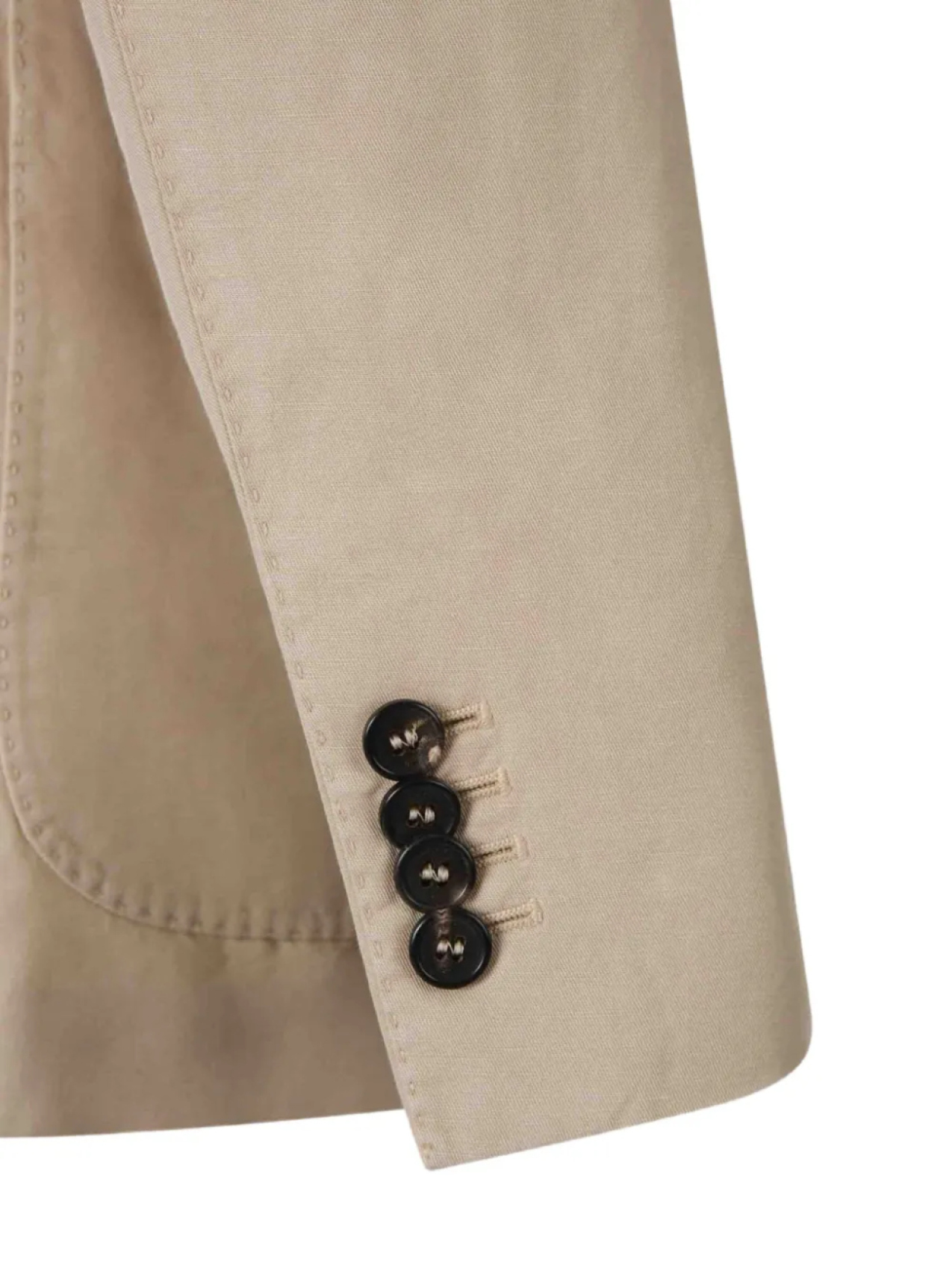 Светло-бежевая застежка на пуговицы спереди, потайная застежка на пуговицы, нагрудный прорезной карман, боковые накладные карманы
